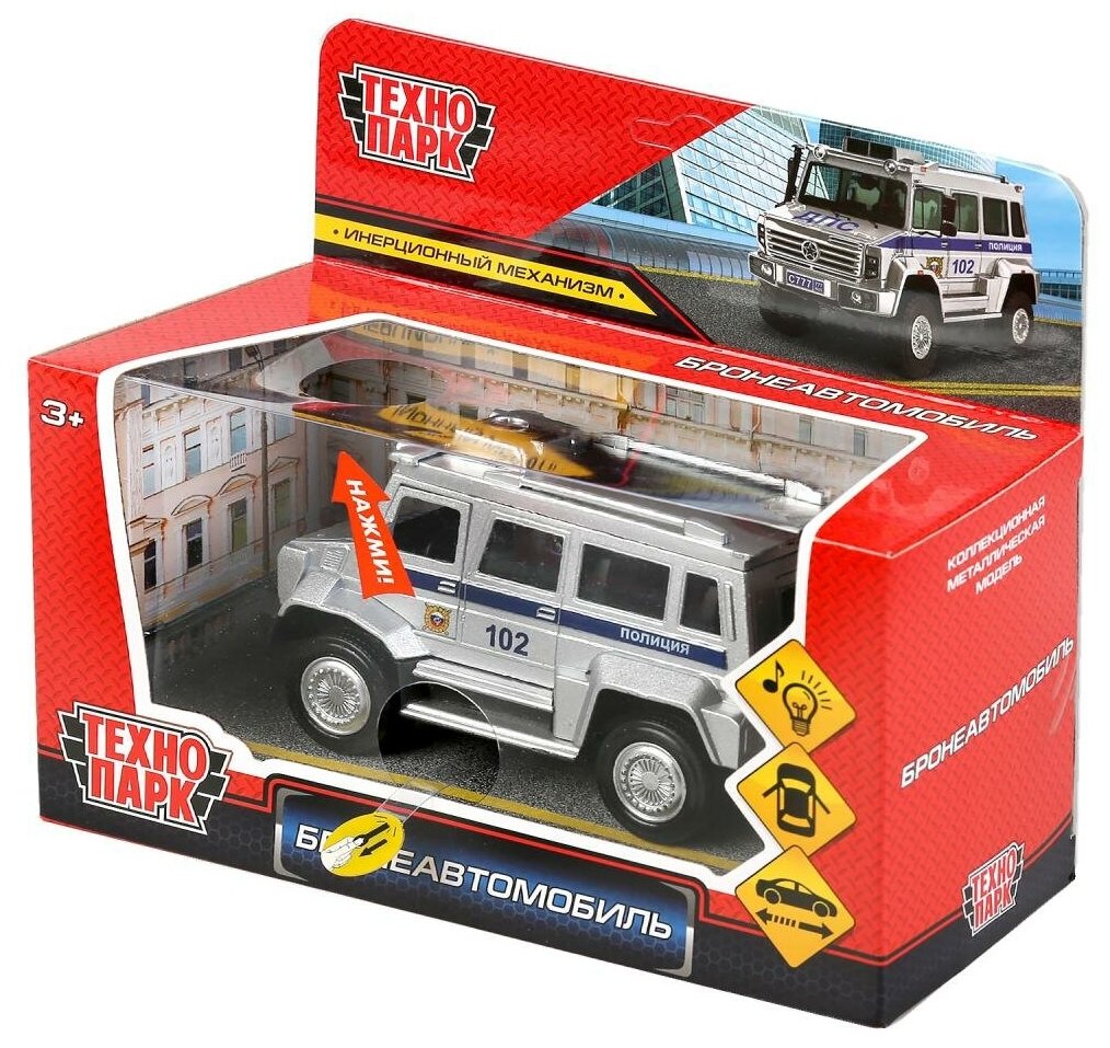 Автомобиль металлический инерционный бронеавтомобиль полиция 12 см со звуком и светом технопарк FY6055-12SLPOL-SR 1 099 ₽ Подробнее