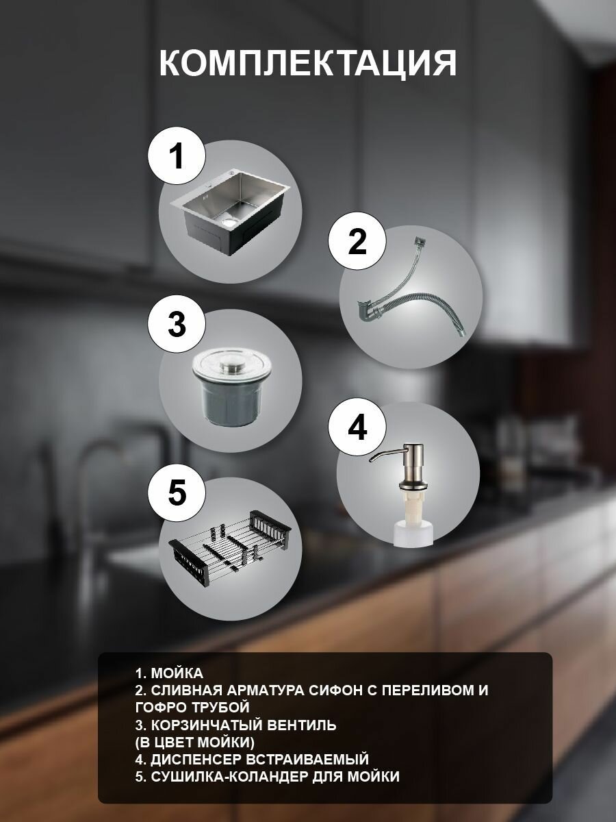 Мойка для кухни Henend 50x45 с дозатором и сушилкой 10 200 ₽ Подробнее