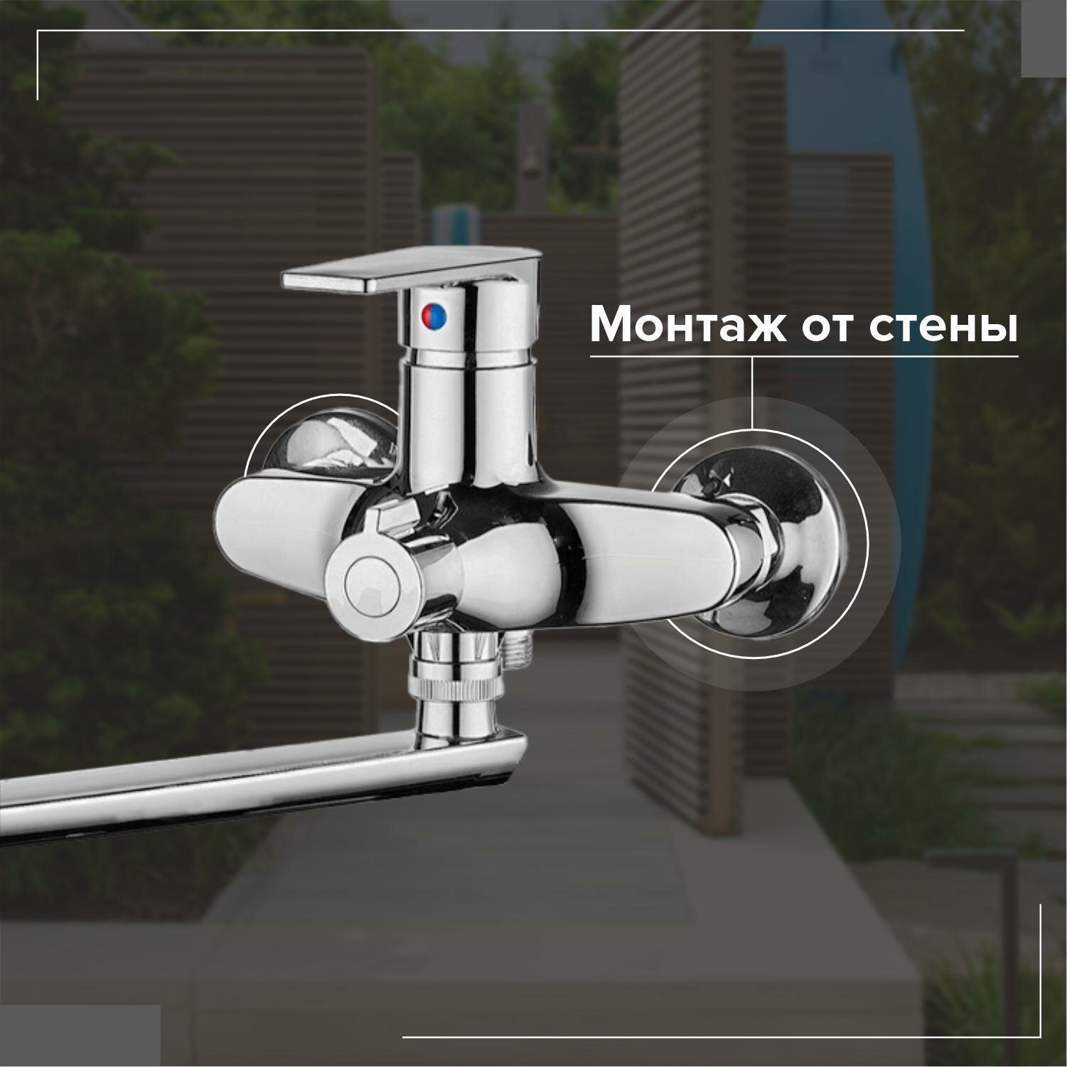 Смесители Смеситель для ванны, РМС, PL6CH-006E, с длинным изливом, ABS-пластик, хром, гарантия