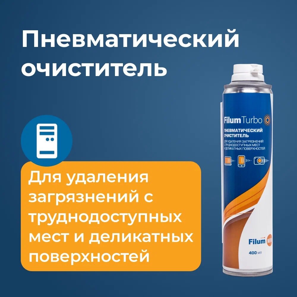 Воздухоочистители Баллон со сжатым воздухом Filum Turbo FL-CLN-Air400 пневматический очиститель 400 мл для удаления загрязнений с труднодоступных мест и деликатных поверхностей, сжатый воздух