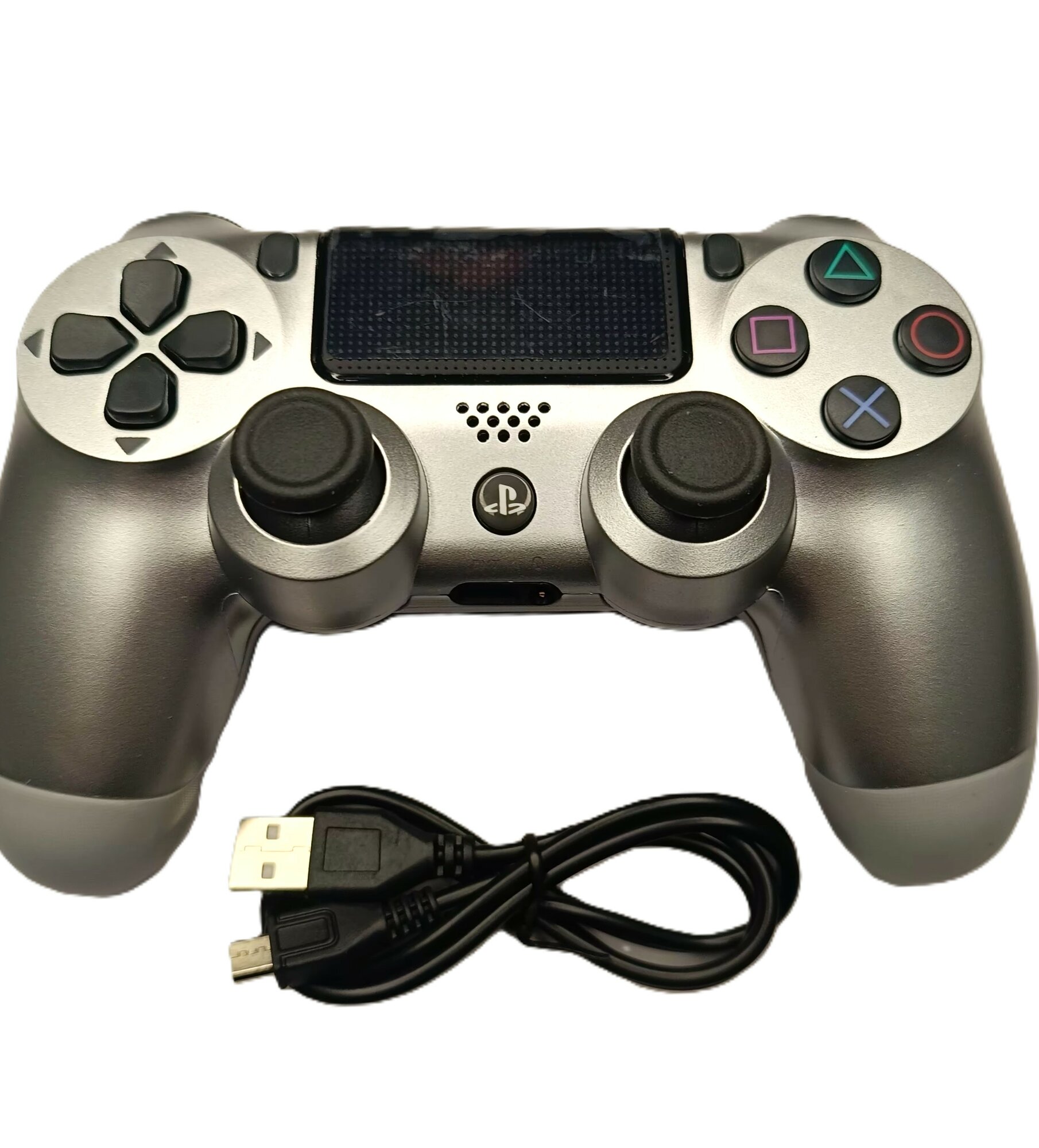 Игровые манипуляторы Джойстик (геймпад) беспроводной Bluetooth для PlayStation 4. Джойстик совместимый с PS4, PC и Mac, устройства Apple, устройства Android, серебристый