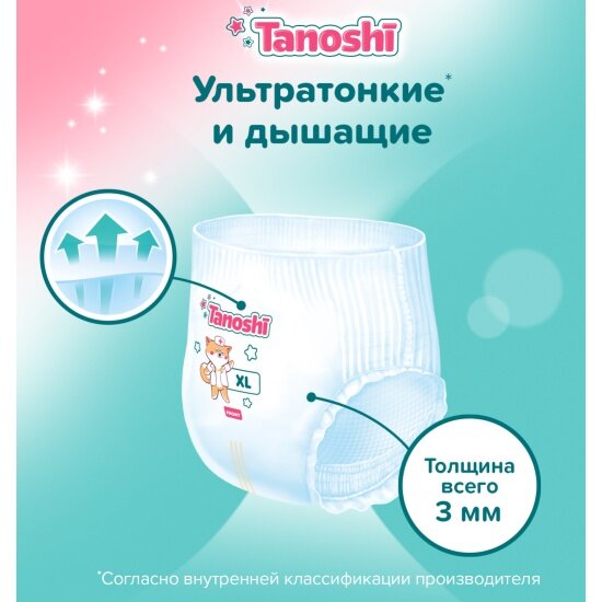 Подгузники (памперсы) Подгузники-трусики Tanoshi размер XL/5 (12-22 кг), 38 шт, ультратонкие и дышащие