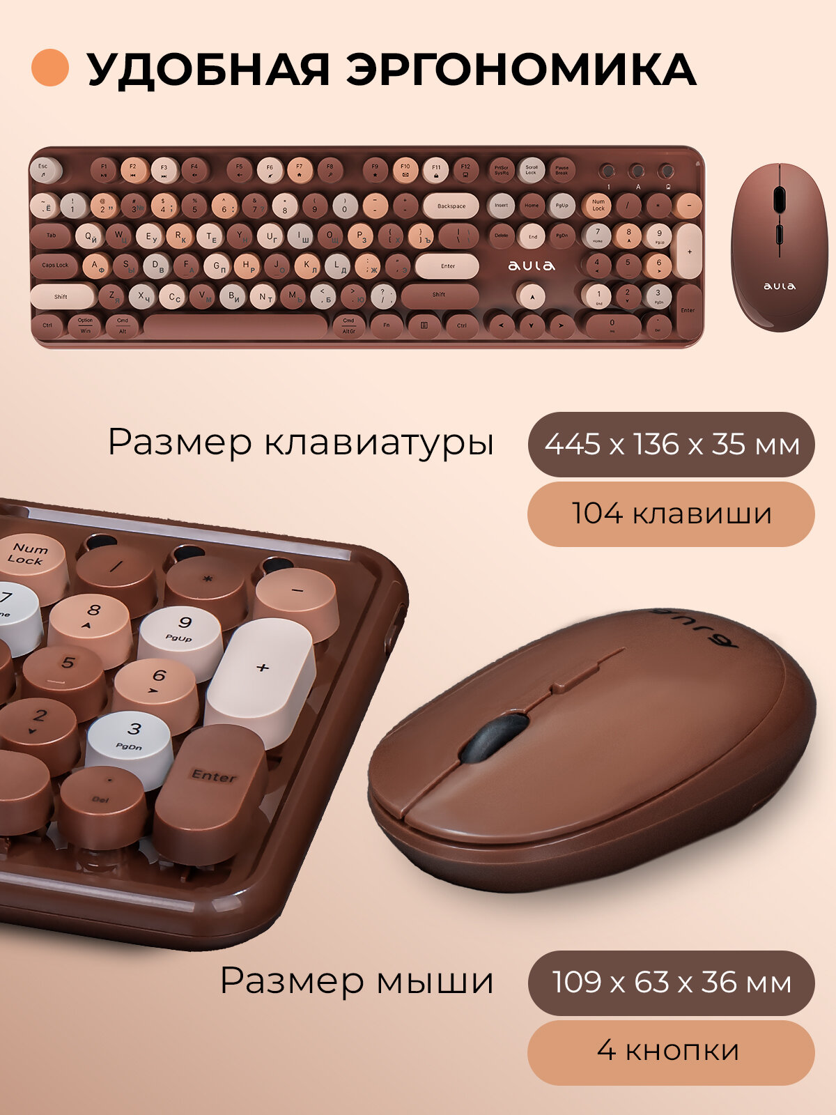 Клавиатуры Клавиатура и мышь Aula AC306 беспроводные Coffee-Colorful (80003621)
