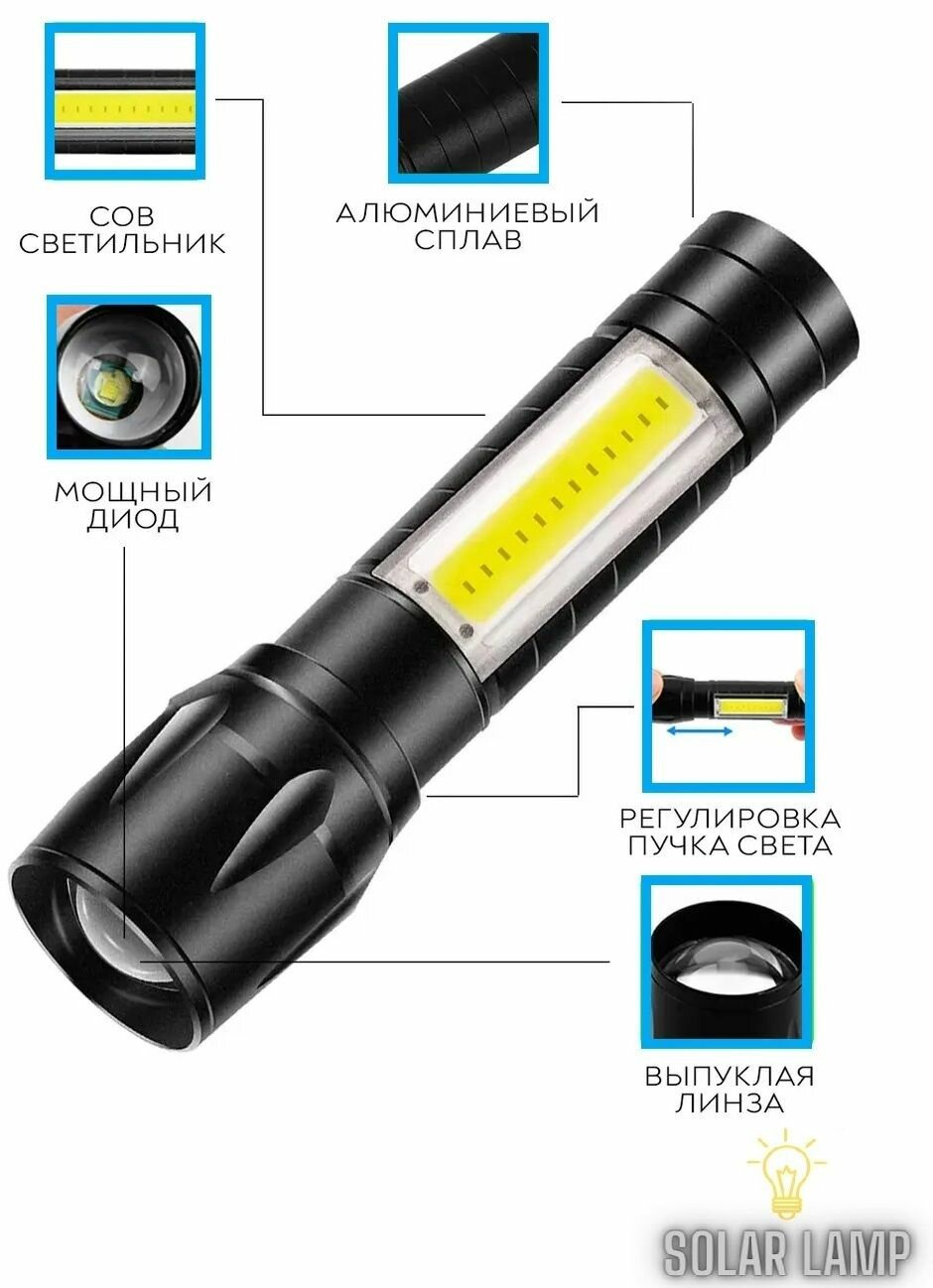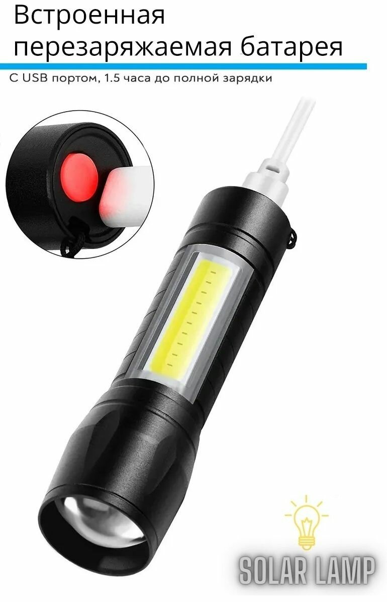 Фонарики Фонарик светодиодный с фокусировкой компактный сверхъяркий заряд от microUSB