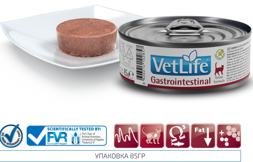 Корм для кошек Vet Life Cat Gastrointestinal с курицей диетический влажный корм для кошек при заболеваниях ЖКТ