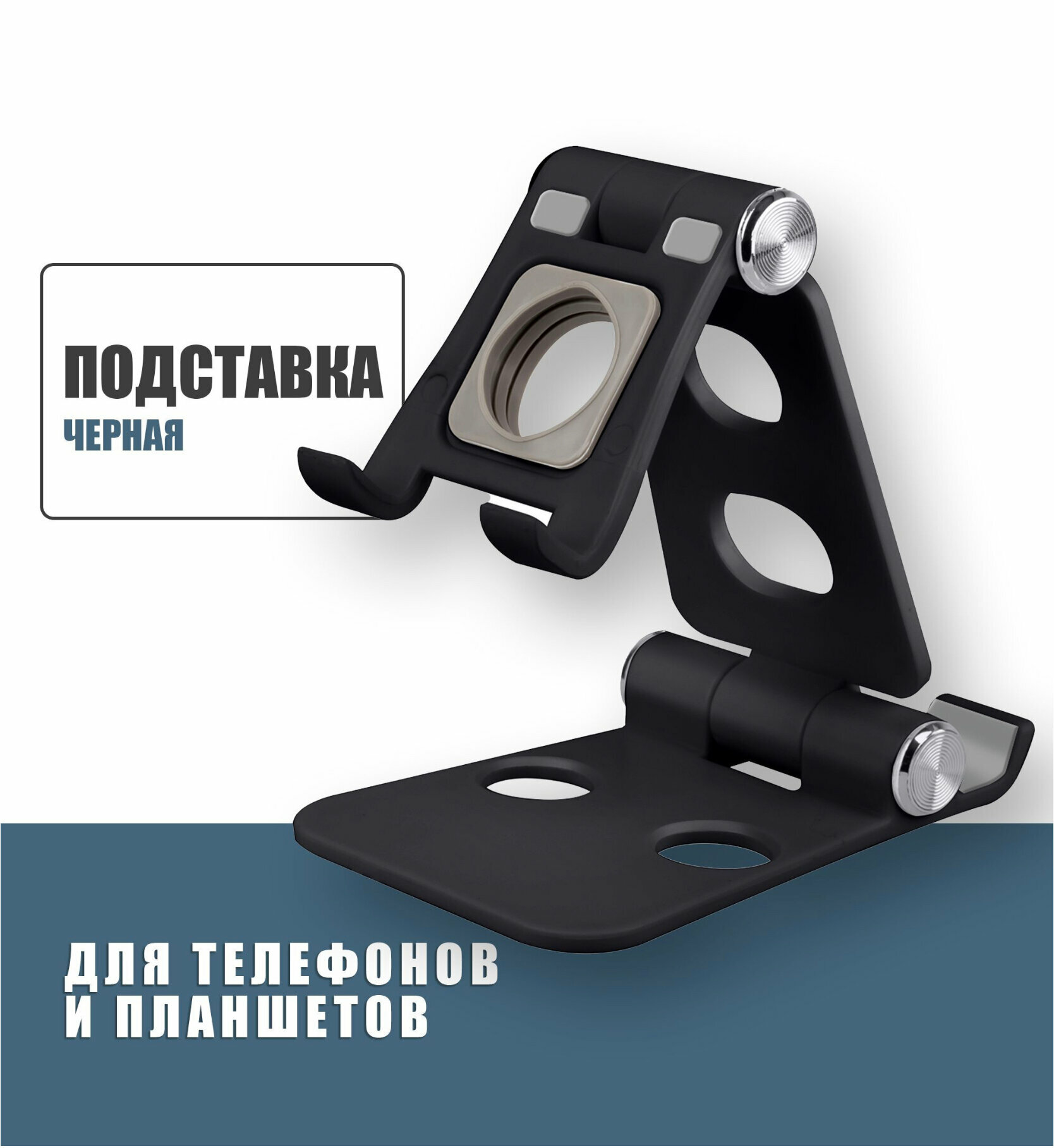 Подставка для телефона настольная / Держатель для телефона и планшета, смартфона Черный / Крепление под телефон на стол / Селфи аксессуары