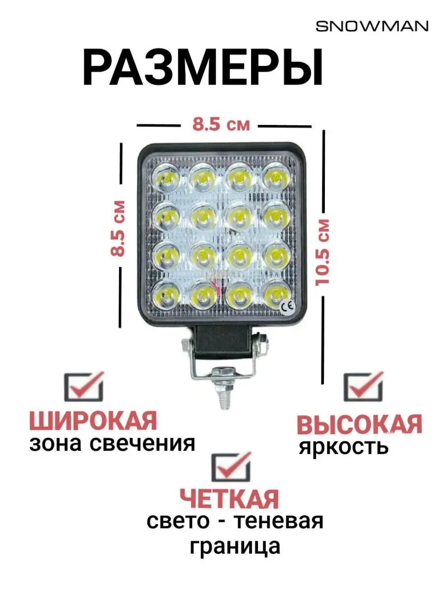 Вспышки Фара автомобильная светодиодная/ фсо вспышки/ПТФ Противотуманная фара/стробоскоп/ LED 48W 10,3 х 8,5 см