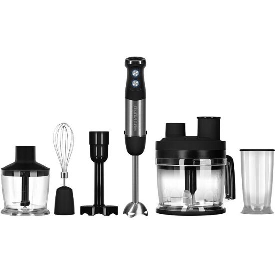 | Насадки | ножка-блендер / 2 лезвия / / венчики для взбивания / нож для измельчения / 2 диска для шинковки / нарезки / насадка для нарезки кубиками / приготовление пюре / капучинатор (вспениватель) |