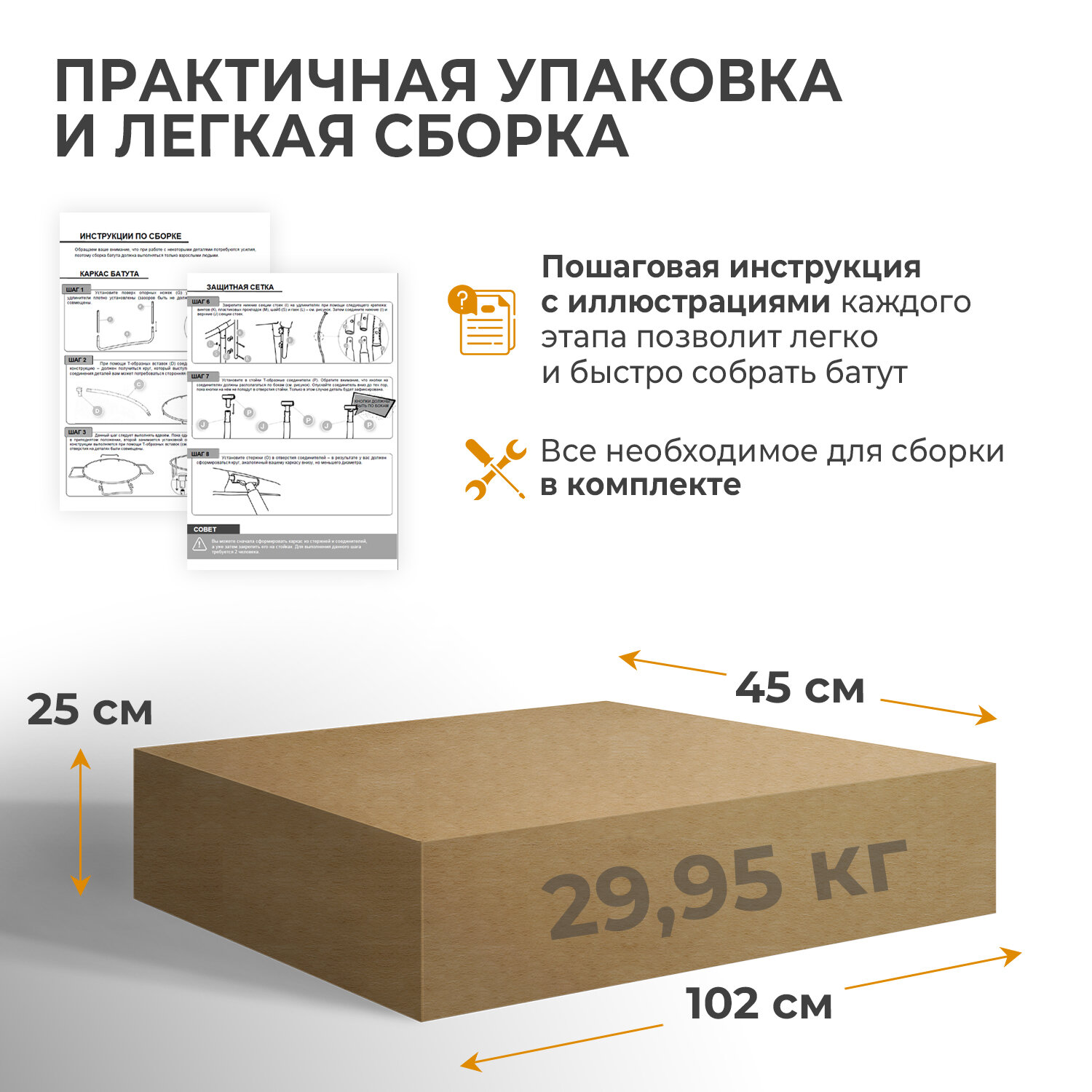 | Размер батута (ДхШхВ) | 137x137x165 см |