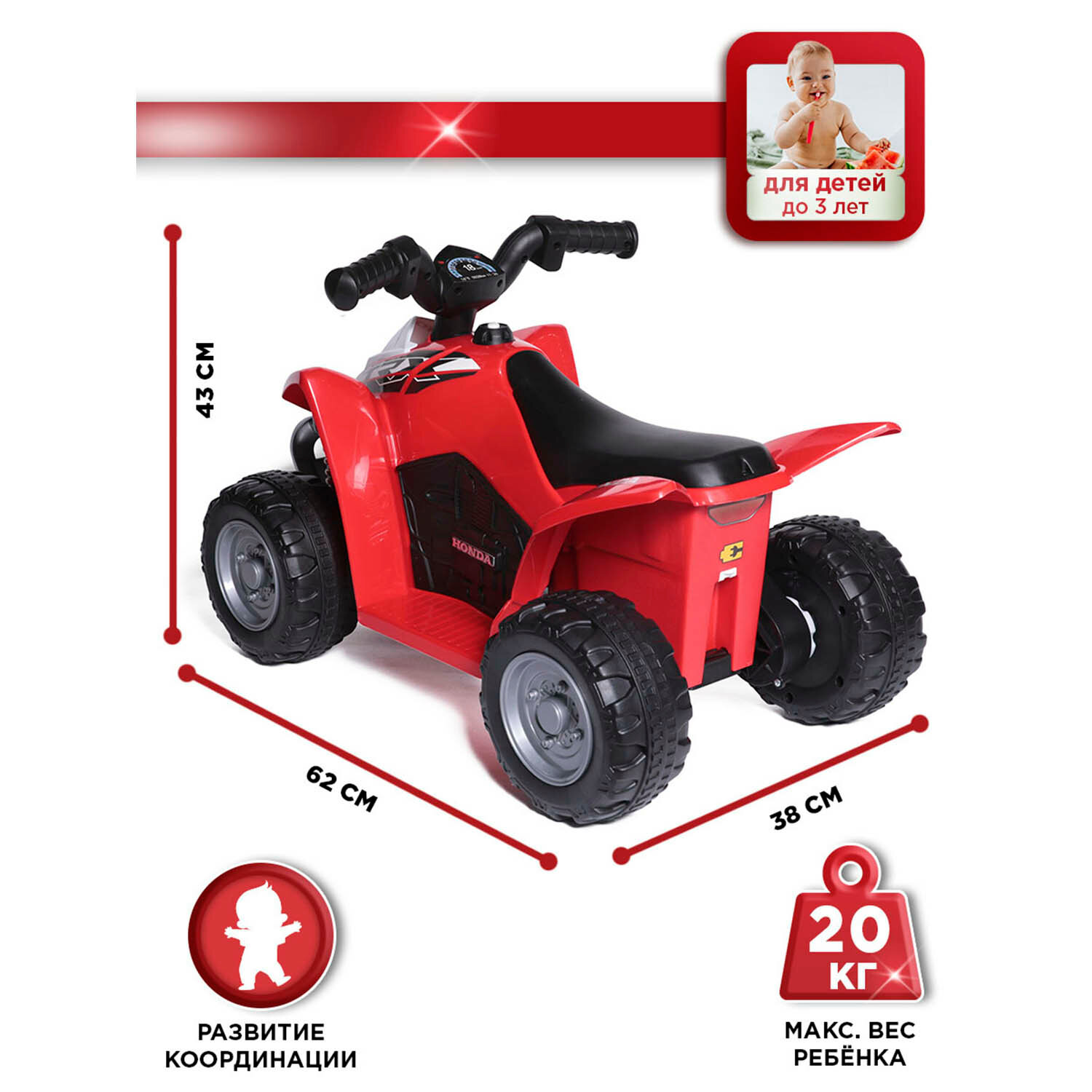 Детские электромобили Электромобиль на аккумуляторе Хонда, Babycare, красный