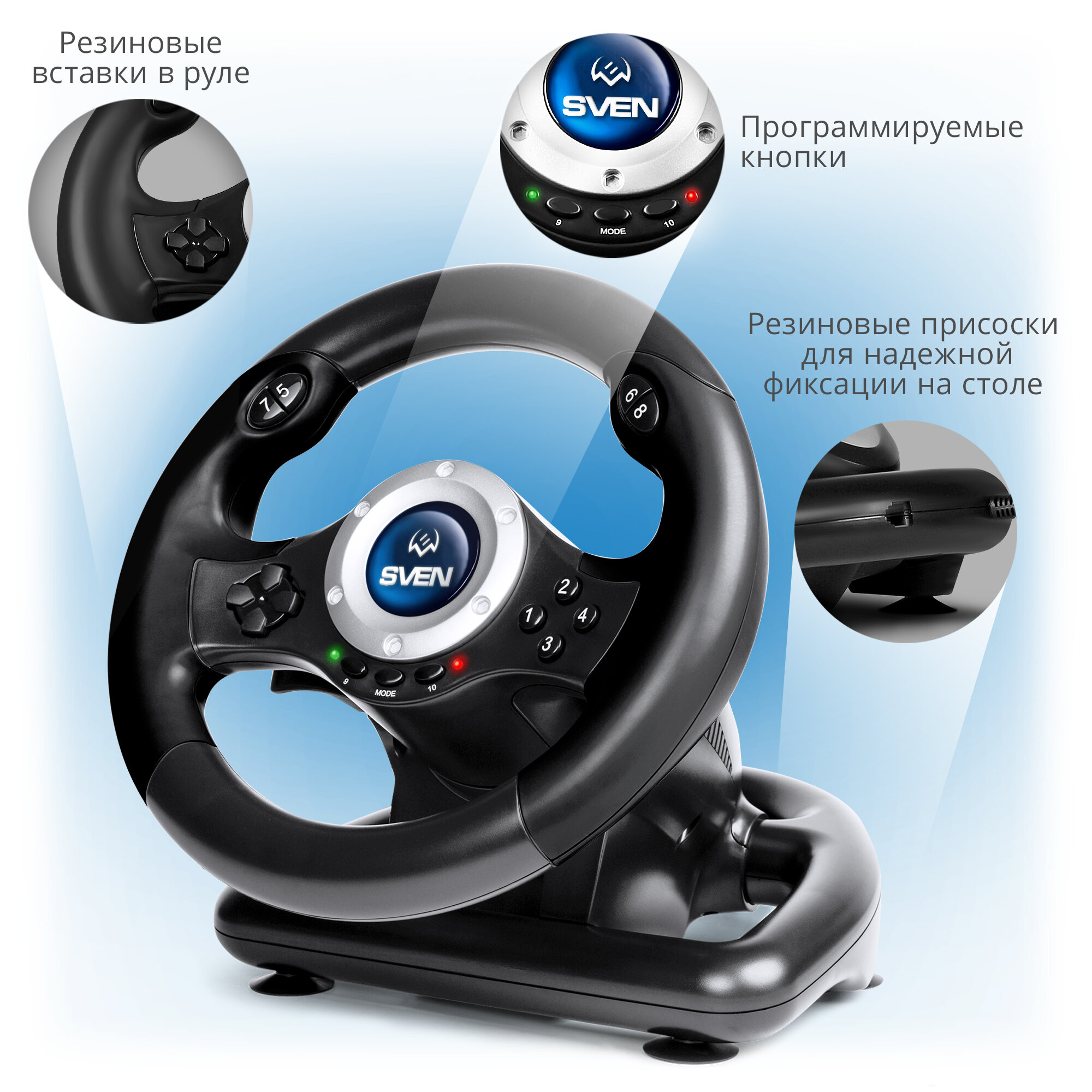 SVEN GC-W500 Руль чёрный (виброотдача, педали, джойстик, 10кн., USB)