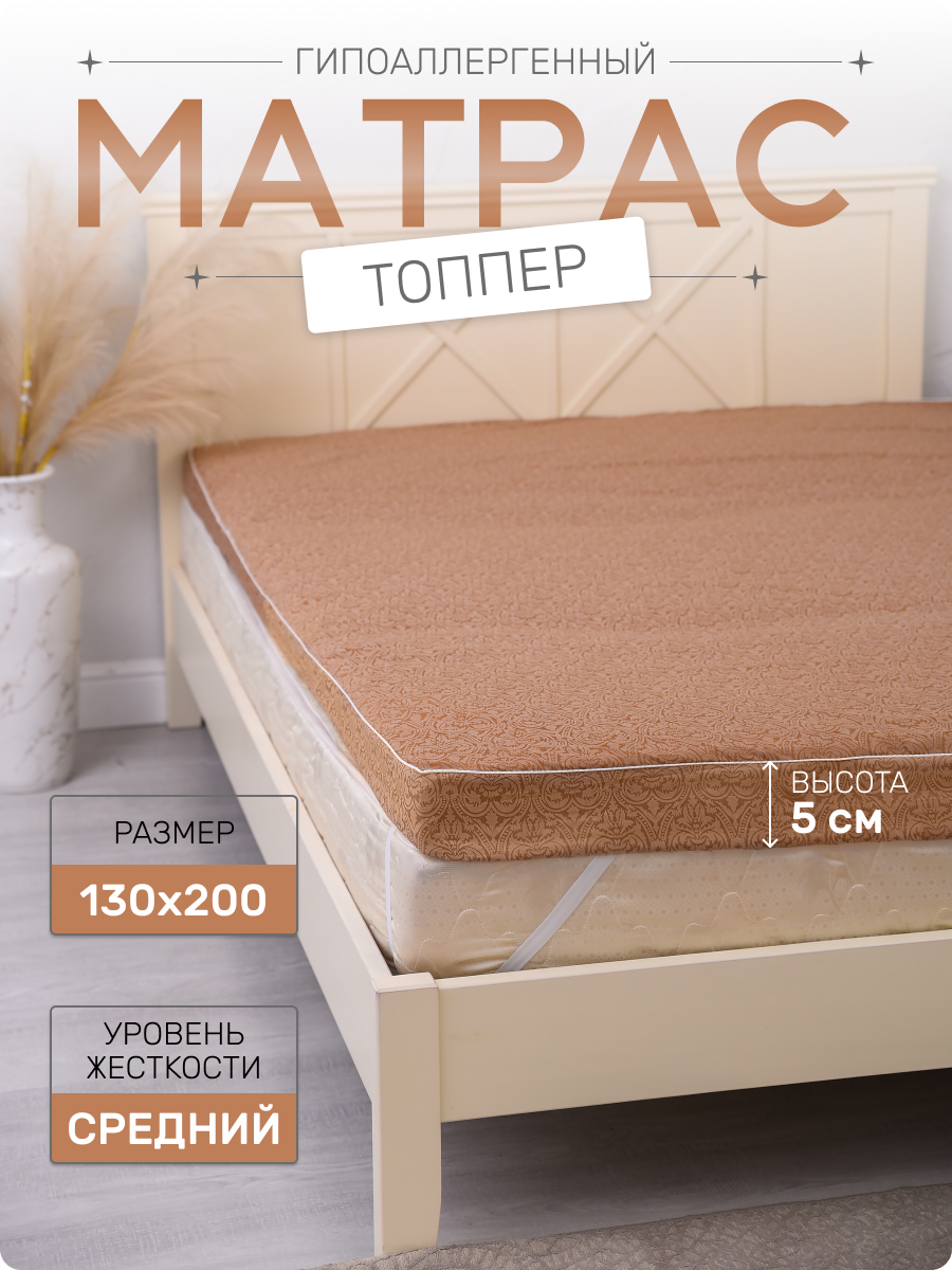 Матрасы Матрас топпер на диван, кровать, 5 см, 130x200 см Мир-текст