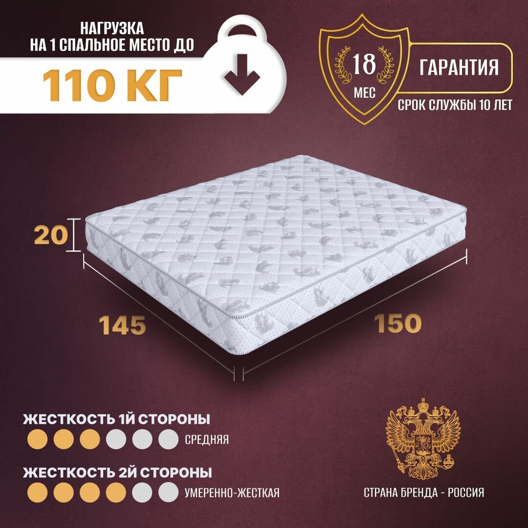 Матрасы Матрас с независимыми пружинами 145х150, для кровати, Cosmic Comet анатомический, 20 см, двуспальный, средней жесткости
