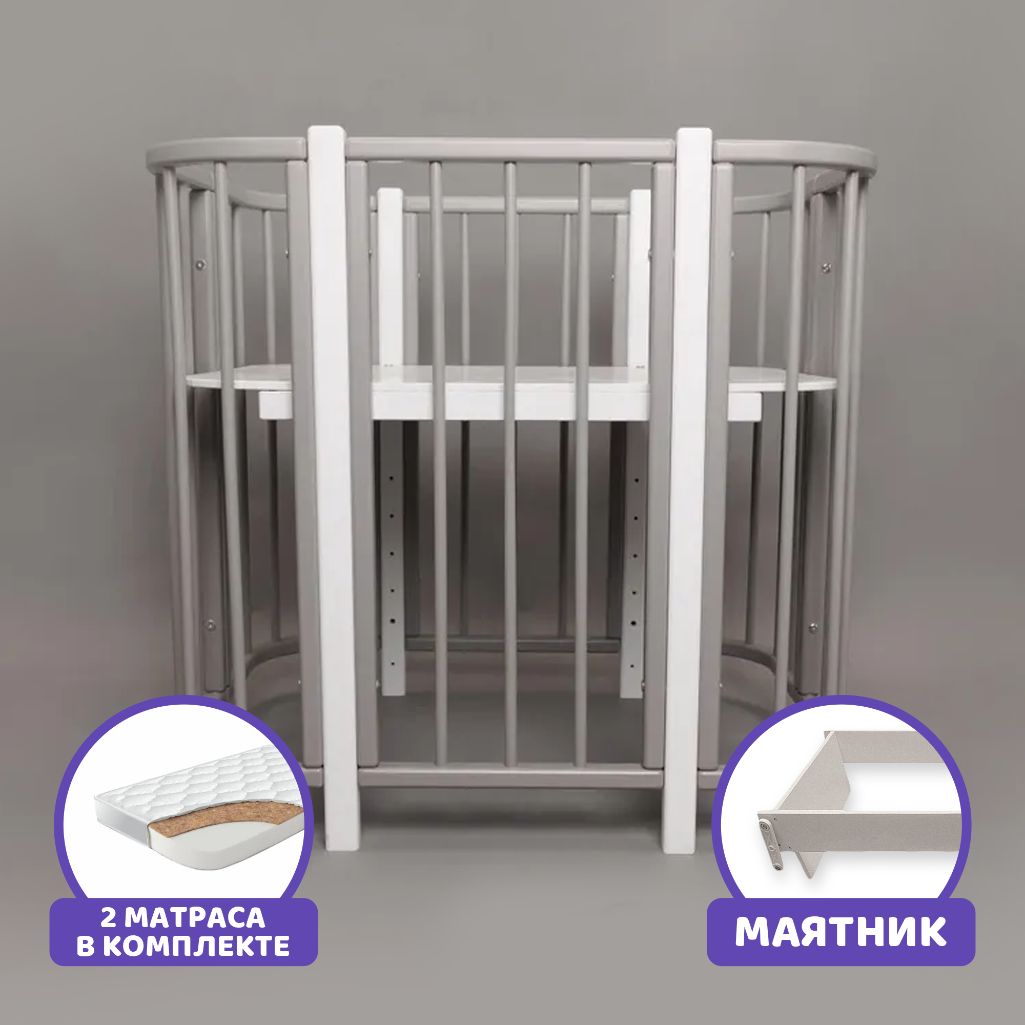 Кроватки Кроватка-трансформер Merry Happy 4в1 Карамель серая + комплект матрасов + маятник