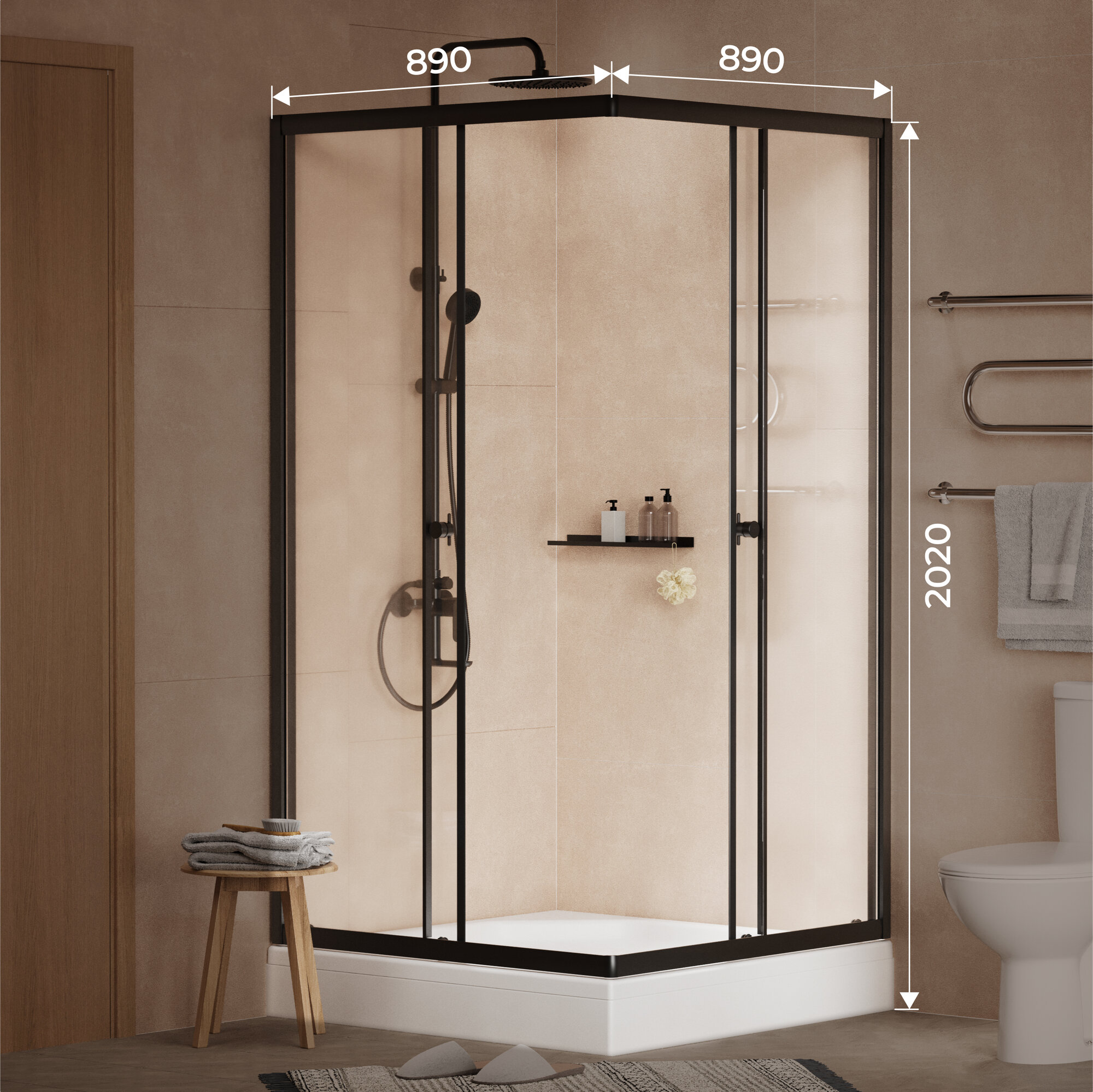 Душевой уголок с поддоном Homsly, хром, квадратный 90*90 см, коллекция Basic, 4H-020-CS90-BSC