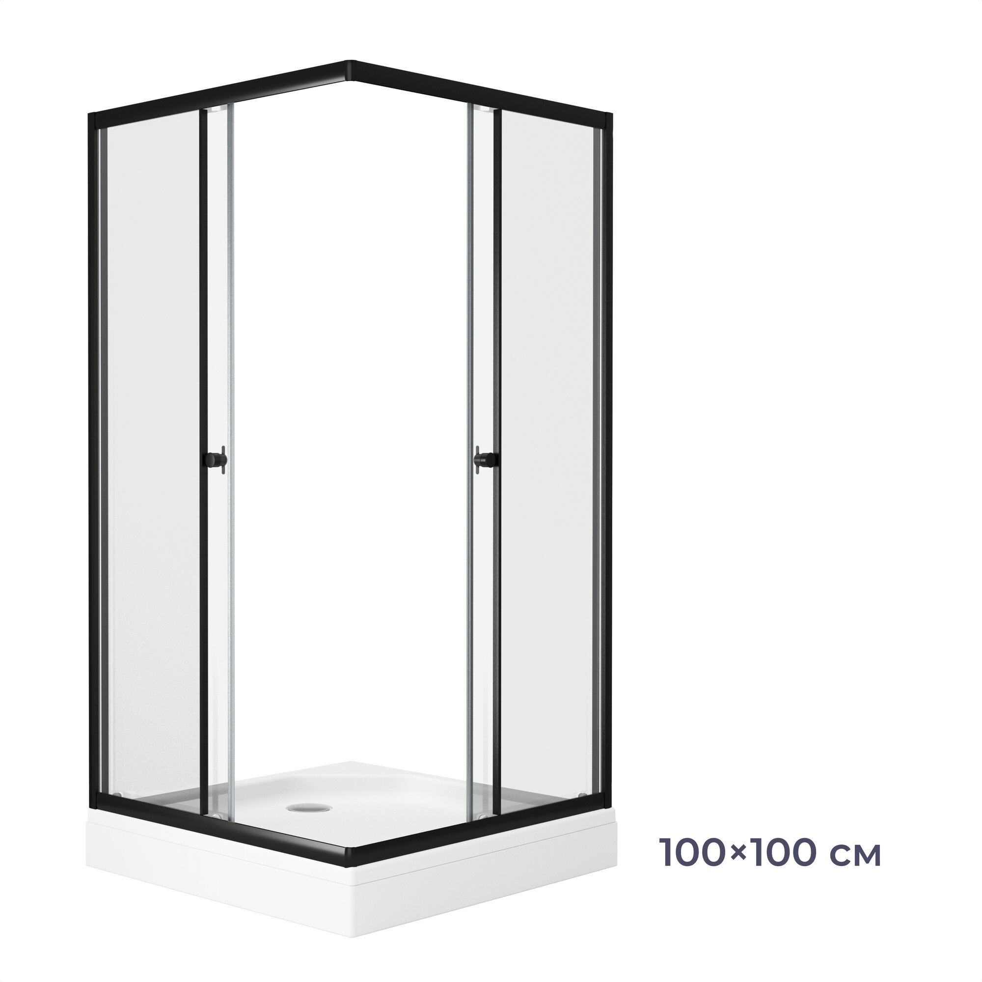 Душевые кабины Душевой уголок с поддоном Homsly, черный, квадратный 100*100 см, коллекция Basic, 4H-023-BS10-BSC