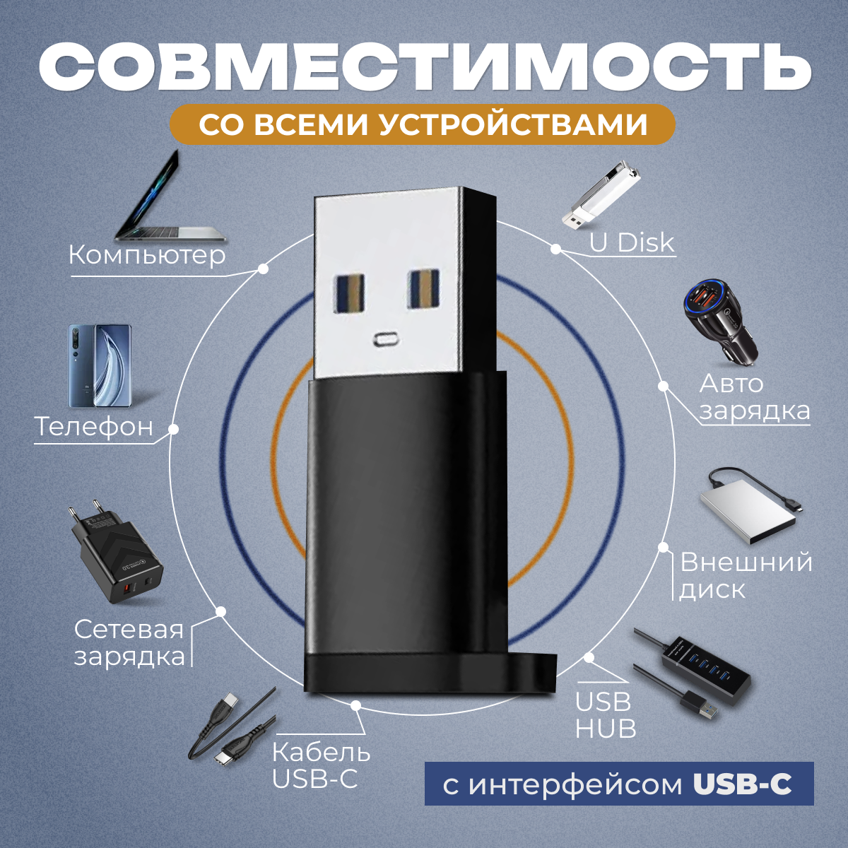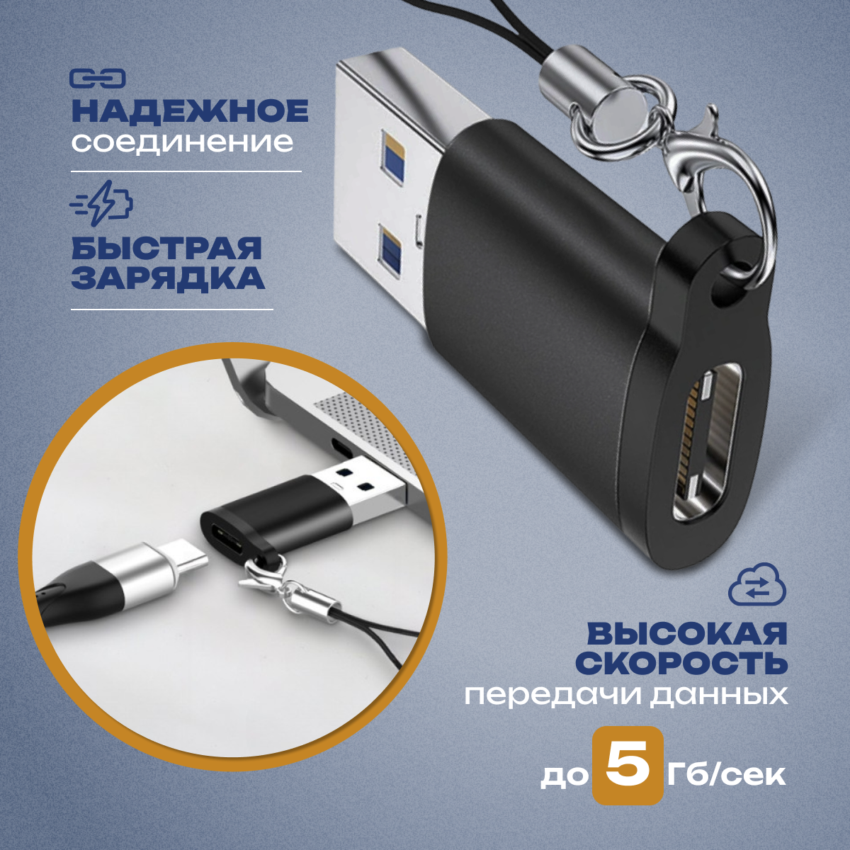 Холодильники Переходник с USB 3.0 на Type C, адаптер OTG тайп си для телефонов, планшетов, смартфонов и компьютеров, алюминий, черный
