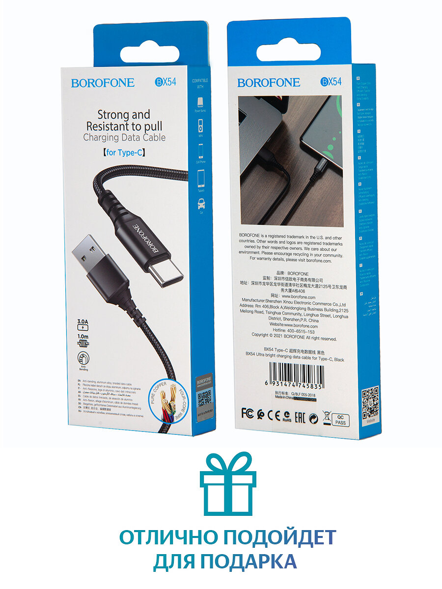 Зарядки для гаджетов Кабель USB Type C 1метр для быстрой зарядки телефона 3А, нейлон Black тайп си / Быстрая зарядка для смартфона / Провод для Андроид / Android / Прочный шнур usb type-c