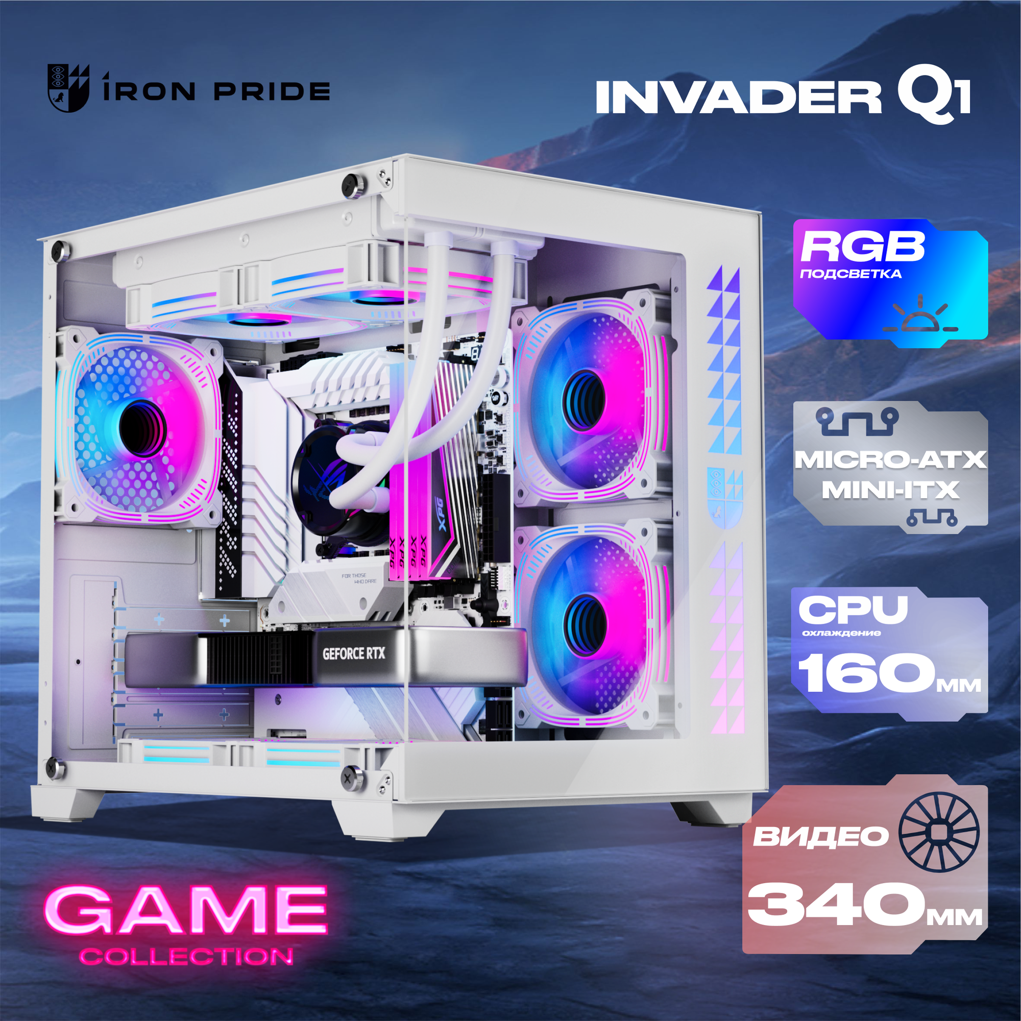 Корпуса Игровой корпус для компьютера Iron Pride INVADER Q1 кубик + закаленное стекло, Micro-ATX, Mini-ITX, белый