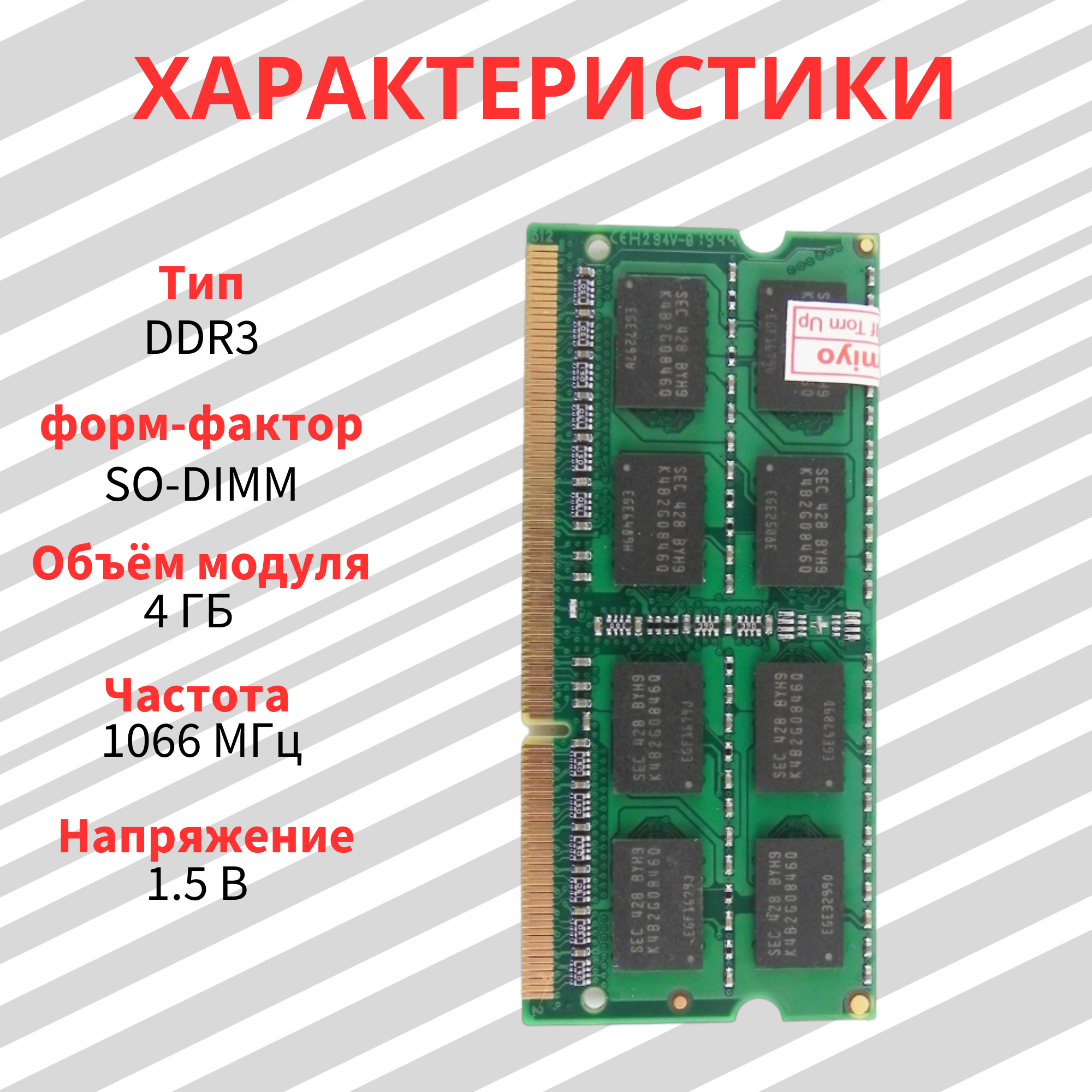 Оперативная память Оперативная память для ноутбука комплект DDR3 2 шт. по 4 ГБ 1066 МГц 1.5V CL7 SODIMM