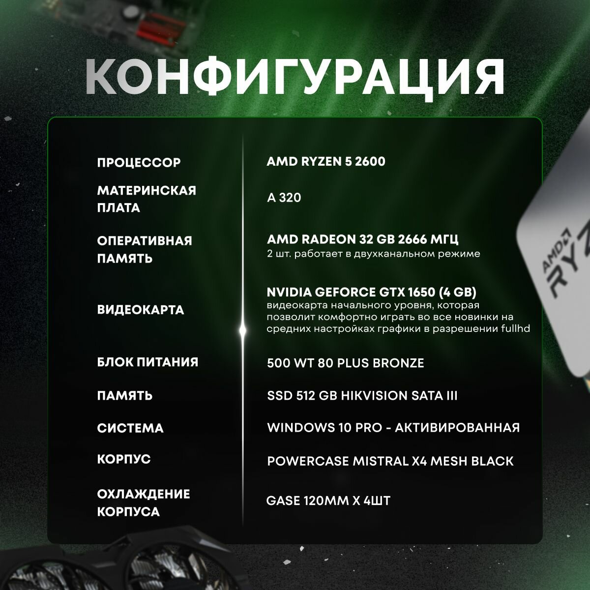 Системный блок игровой мощный для компьютера ПК (AMD RYZEN 5 2600, GTX 1650 4ГБ, ОЗУ 32ГБ, SSD 512GB) 50 452 ₽ Подробнее