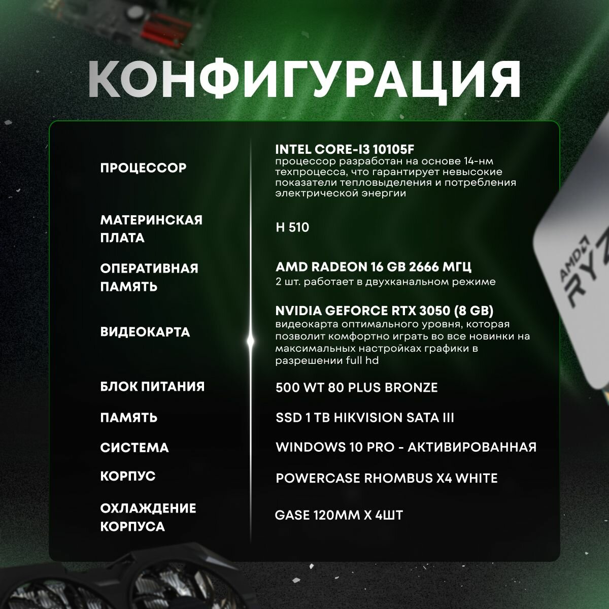 Системный блок игровой мощный для компьютера ПК (intel CORE I3 10105f, RTX 3050 8ГБ, ОЗУ 16ГБ, SSD 1TB) 70 921 ₽ Подробнее