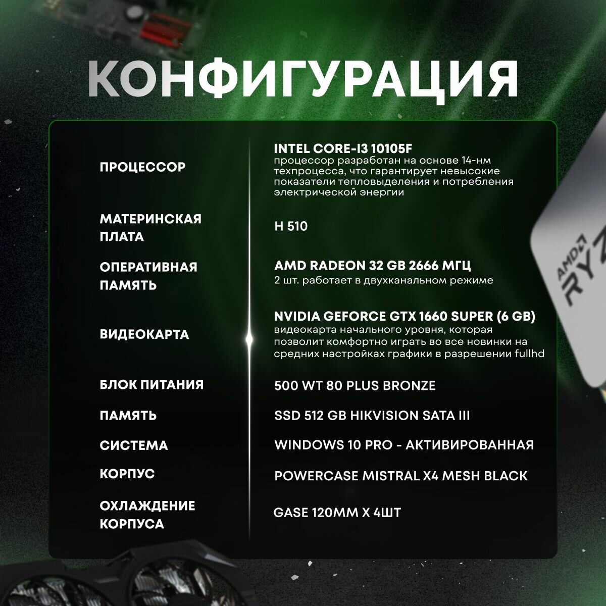 Системный блок игровой мощный для компьютера ПК (intel CORE-I3 10105f, GTX 1660S 6ГБ, ОЗУ 32ГБ, SSD 512GB) 59 440 ₽ Подробнее