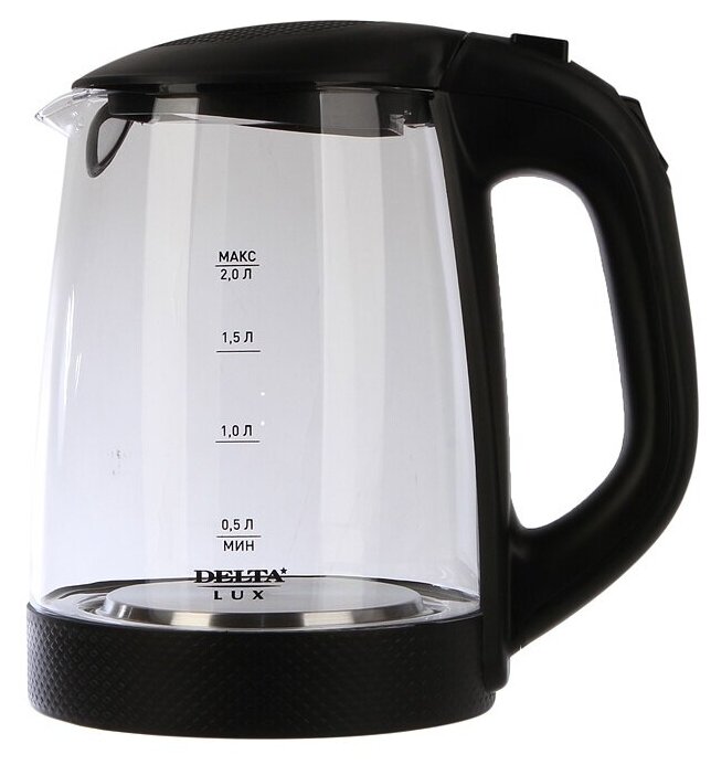 Электрочайник Электрочайник DELTA LUX DL-1058B корпус из жаропр. стекла, черный: мощность 2200 Вт, объем 2 литра