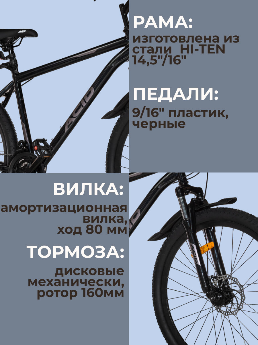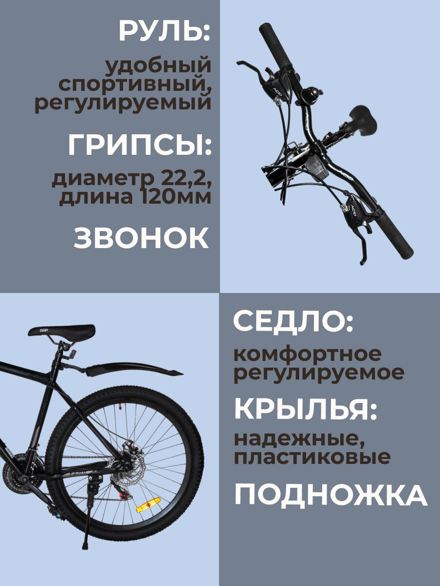 Велосипеды Велосипед горный 26"ACID F 200 D 21 скорость 2023 года рама 19" Black/Gray