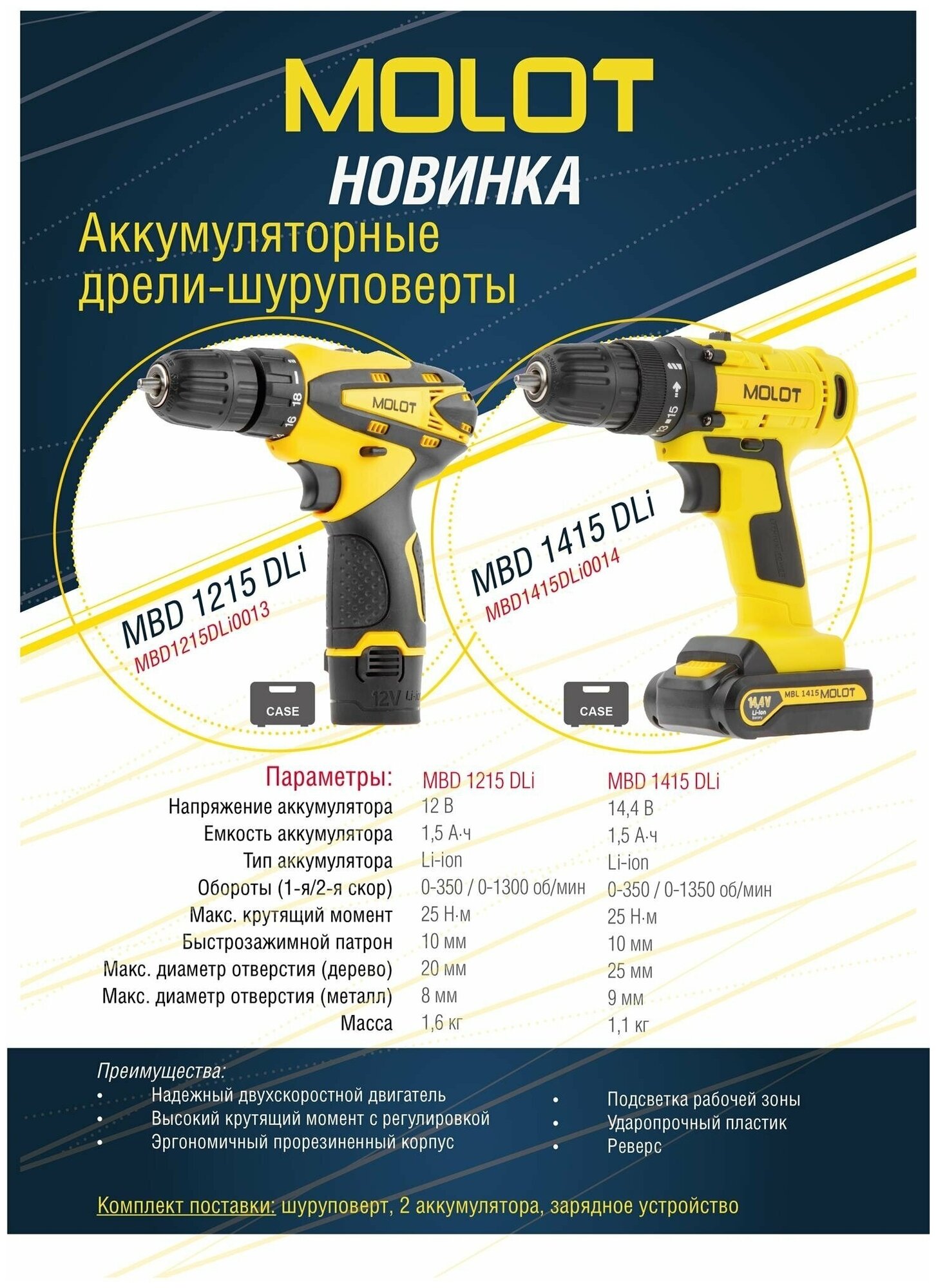 Шуруповерт Molot MBD 1215 DLi MBD1215DLi0013 (с 2-мя АКБ, кейс)
