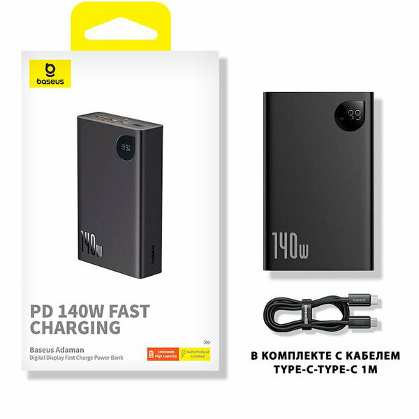 Powerbank Повербанк Baseus 24000mAh 140W+быстрая зарядка+кабель P10021508113-00