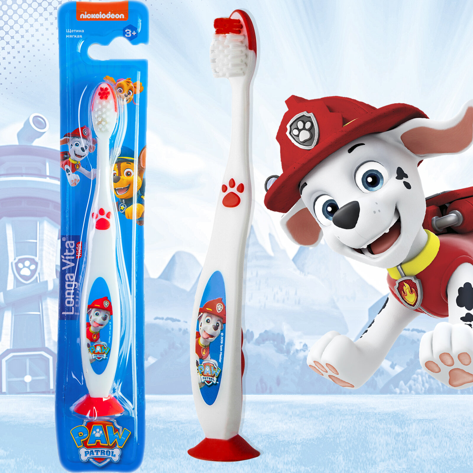 Зубная щетка детская Longa vita Paw Patrol. герой Маршалл щенячий патруль, на присоске, от 3-х лет, мягкая, цвет красный
