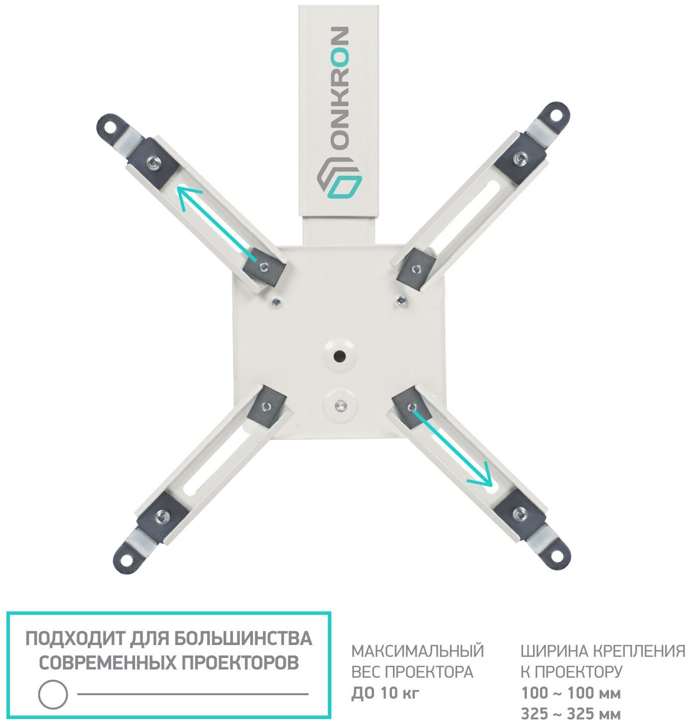 Лучшие цены. Описание товара Потолочно-настенный кронштейн ONKRON K5A подходит для большинства современных проекторов весом до 10 кг. Удобная система крепления поможет зафиксировать кронштейн на стене и сделать это легко и быстро, сэкономив время и силы. Крепкий и прочный, при этом элегантный кронштейн белого цвета станет прекрасным дополнением интерьера. Преимущества А) Выбор ширины крепления к кронштейну. Магазины в вашем городе.