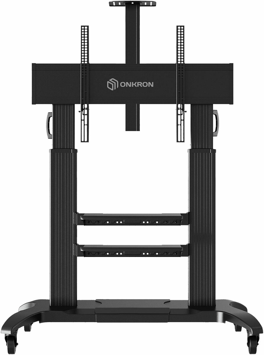 ONKRON Мобильная стойка ONKRON на 1 ТВ/ 60-100" от 200х200 до 1000х600, макс нагр 136,4кг, высота 1400-1725мм, кабель-канал, 2 регулируемые полки, черная