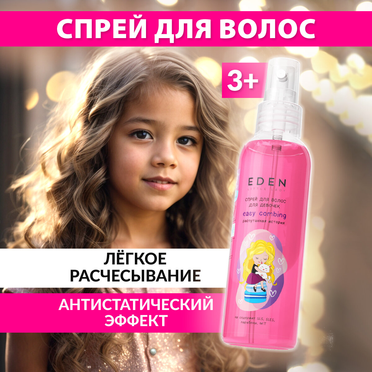 Ходунки Спрей для волос EDEN Little Lady легкое расчесывание 3+ 150 мл