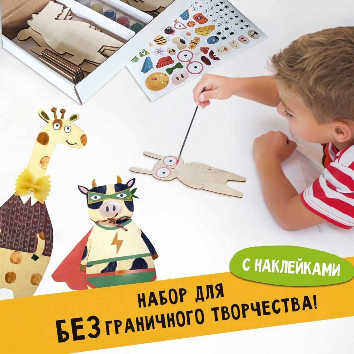 Куклы Набор для творчества и декора из дерева. "Креативные Зверята" Развивающая 3D раскраска.