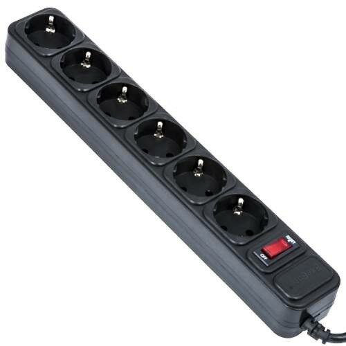 Сетевой фильтр ExeGate SP-6-5B (6 евророзетки с заземлением, 5м, защита от перегрузки, выключатель с подсветкой, черный)