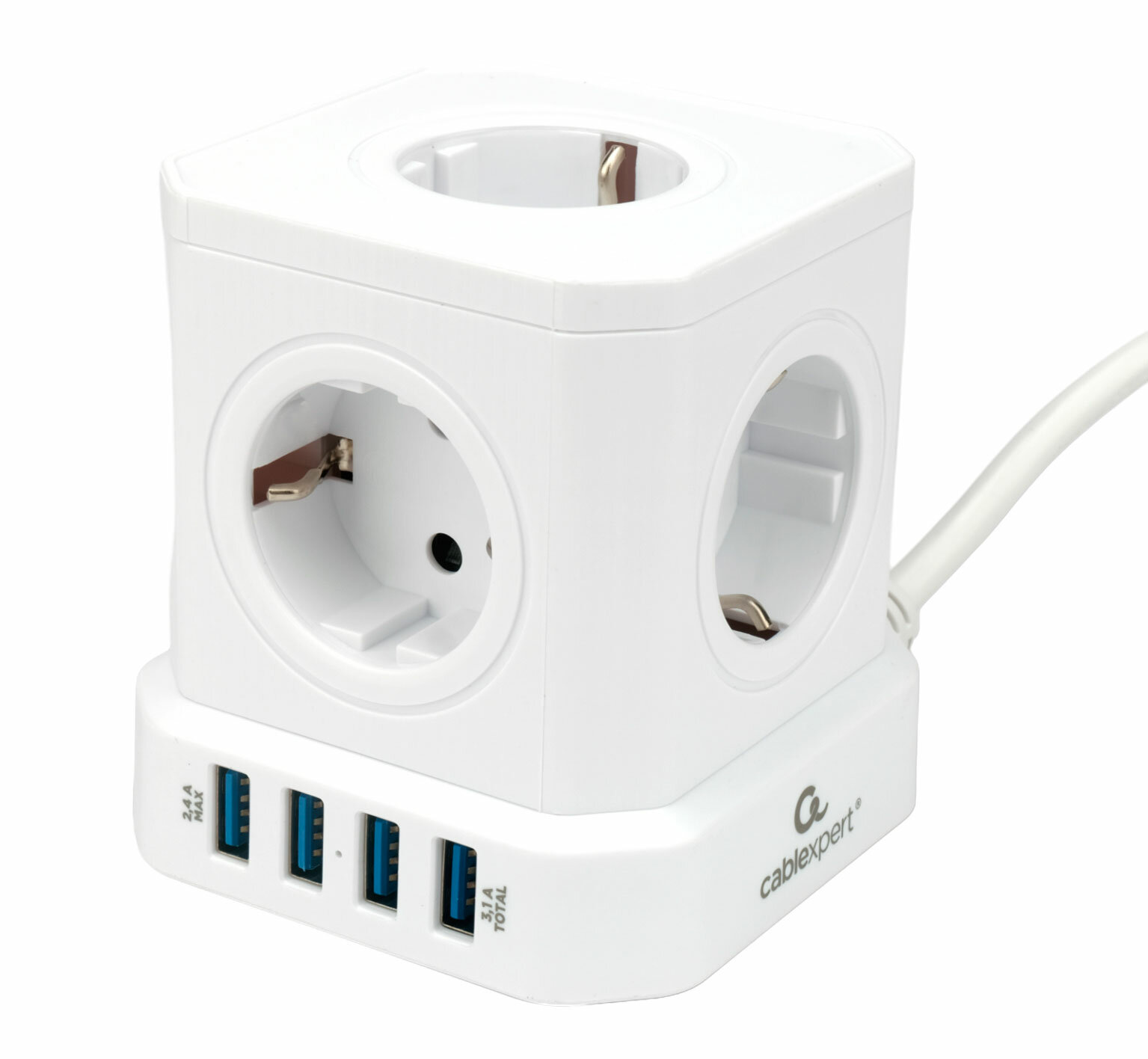 Сетевые фильтры и удлинители Сетевой фильтр Cablexpert Tower TWR-5-U4-W-2, 5р, 10А, 4хUSB, 3.1А, 2м, ур.защиты 4+, белый, 1030905