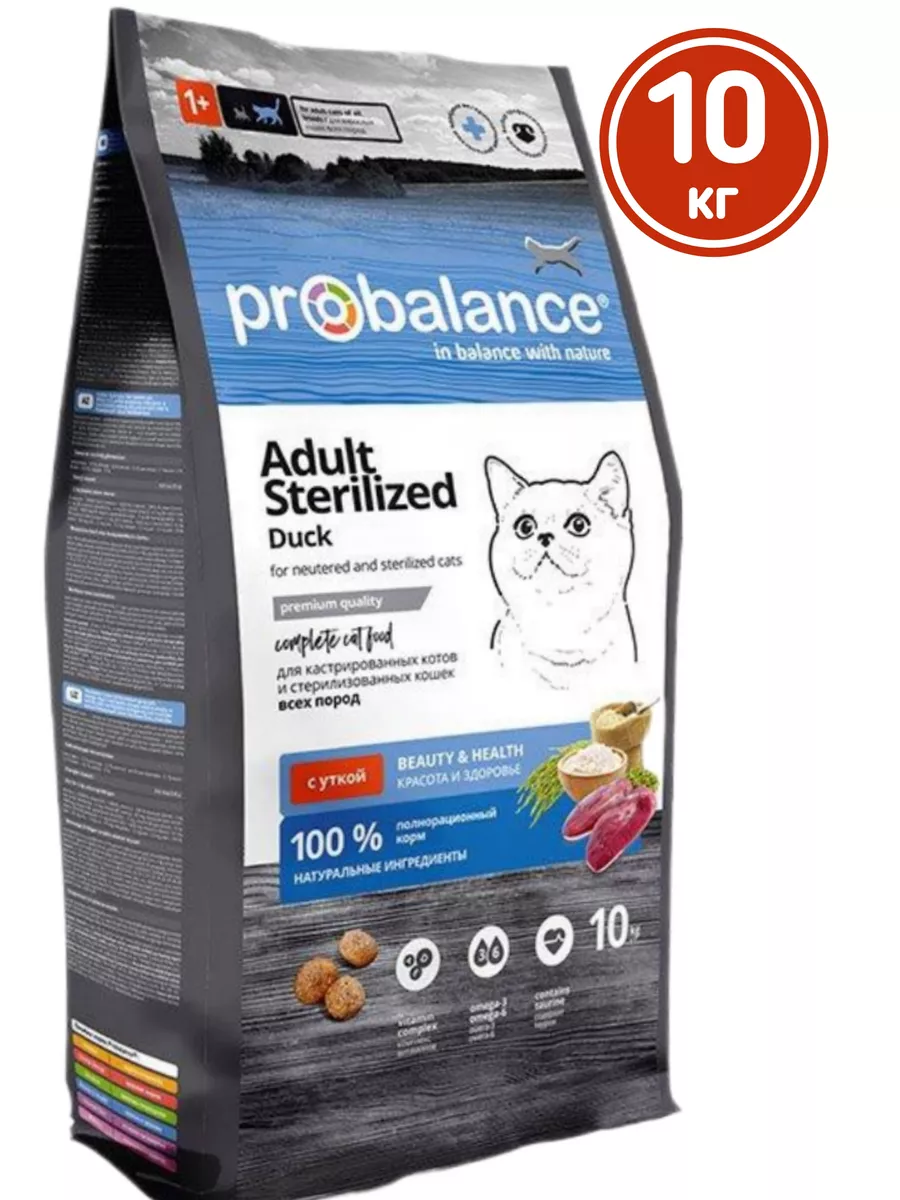 Корм для кошек Корм сухой ProBalance Sterilized для стерилиз. кошек/ кастр. котов с уткой, 10кг