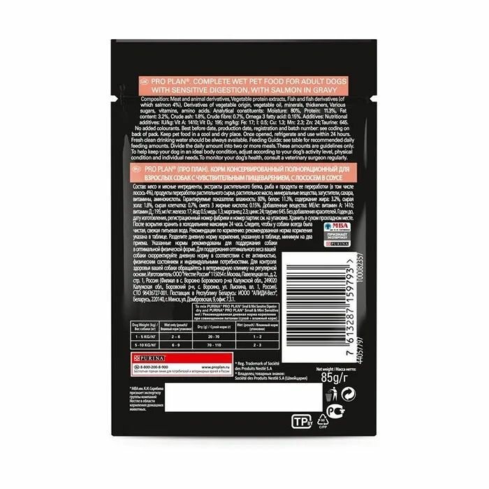 Корм для собак Влажный корм Pro Plan Opti Savour для Взрослых Собак Мелких и Карликовых Пород при Чувствительном Пищеварении, в Соусе с Лососем, Паучи, 26шт. по 85 г
