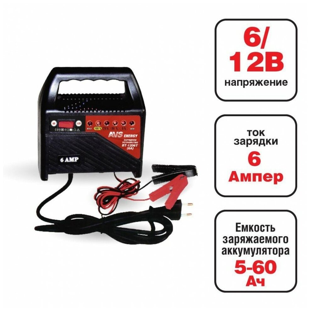 Лучшие цены. Avs Bt-1206T Зарядное Устройство Для Автомобильного Аккумулятора (6A) 6/12V. Магазины в вашем городе.