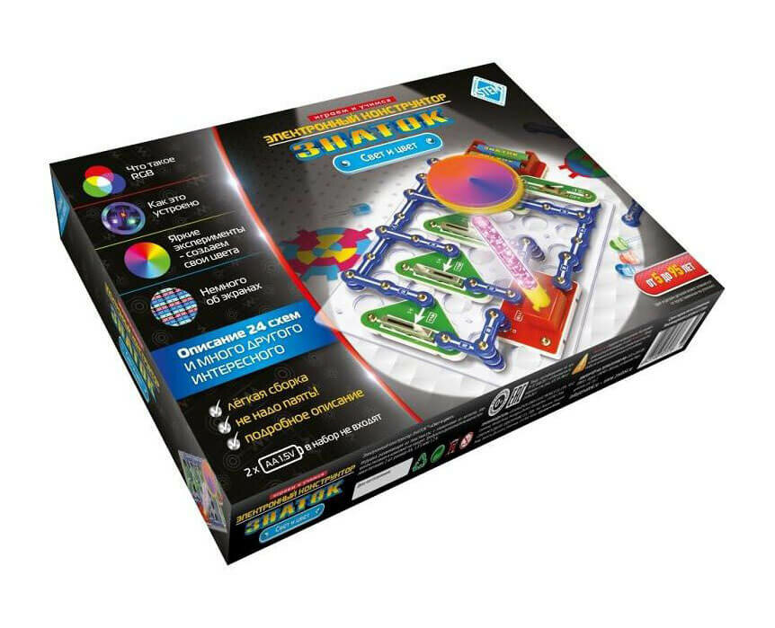 Электроный конструктор знаток "Свет и цвет", игрушки для детей в подарок для девочек и мальчиков