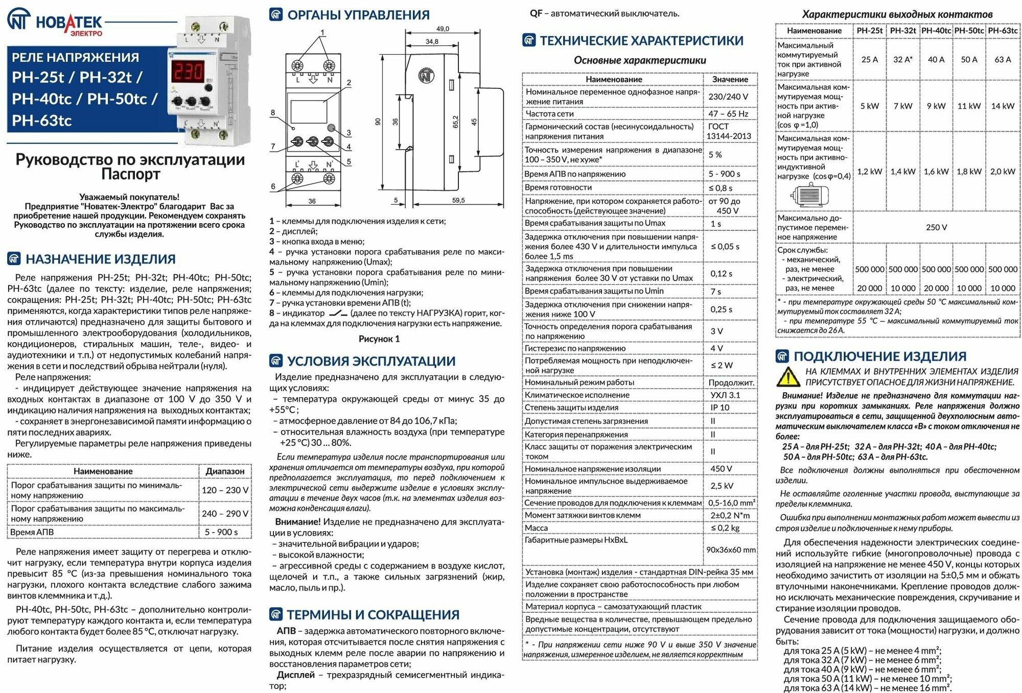 Реле напряжения однофазное РН-32t 32A Новатек-Электро