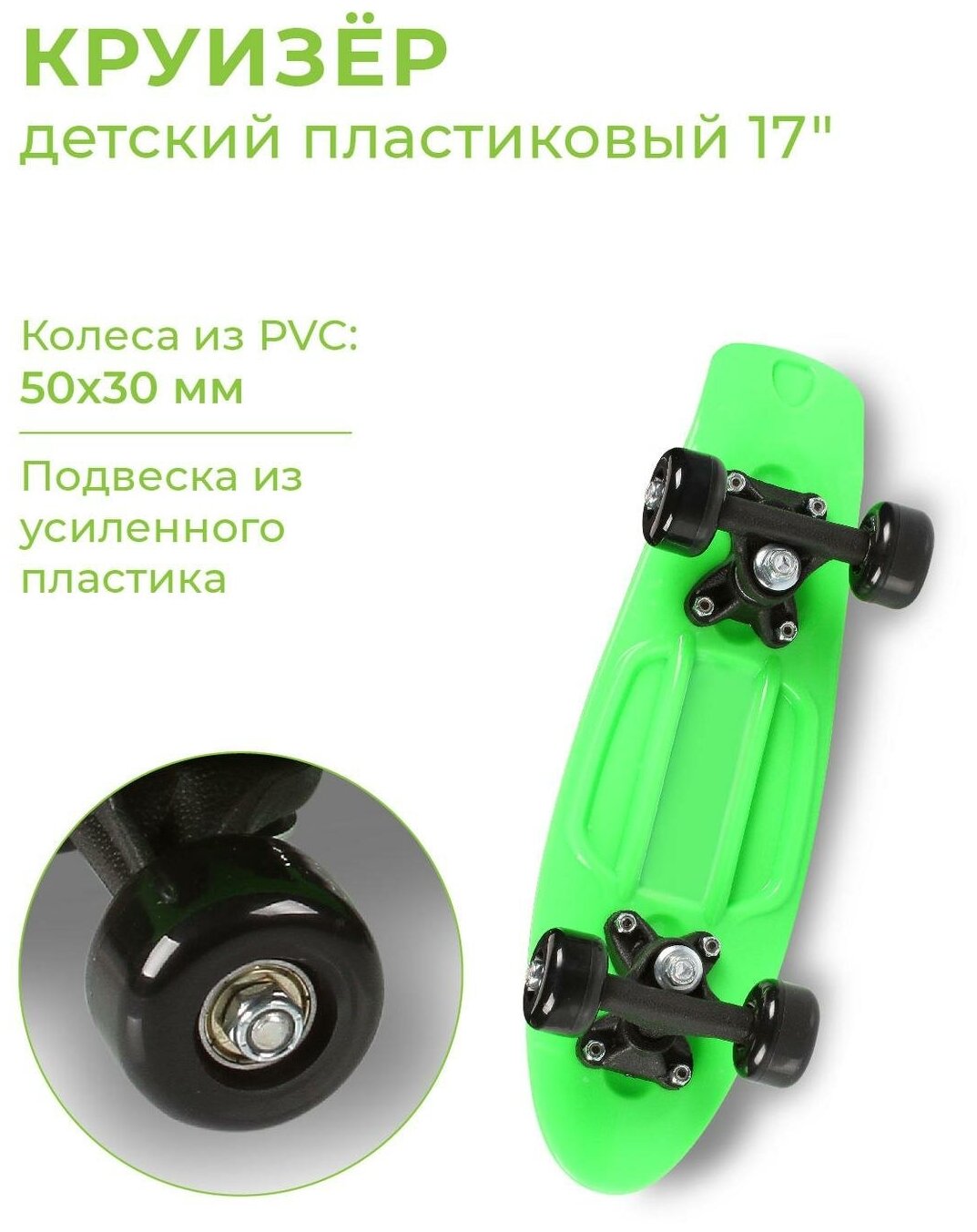Скейтборд Круизер INDIGO (шасси пластиковое, 608z, колеса PVC) LS-P1705 Зеленый 43,18*12,7 см