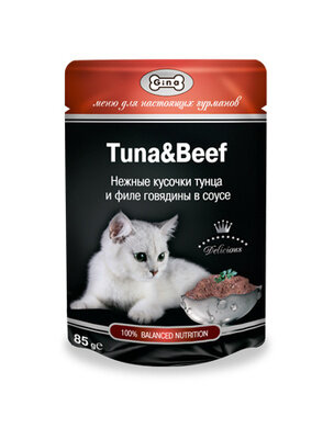Корм для кошек консервированный Gina Tuna & Beef, тунец с говядиной в соусе, пауч 85 г (24 шт.)