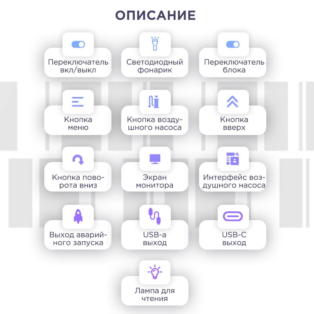 | Функции и возможности | вольтметр / амперметр / индикатор зарядки / восстановление (десульфатирование) / защита от перезарядки / режим хранения АКБ |