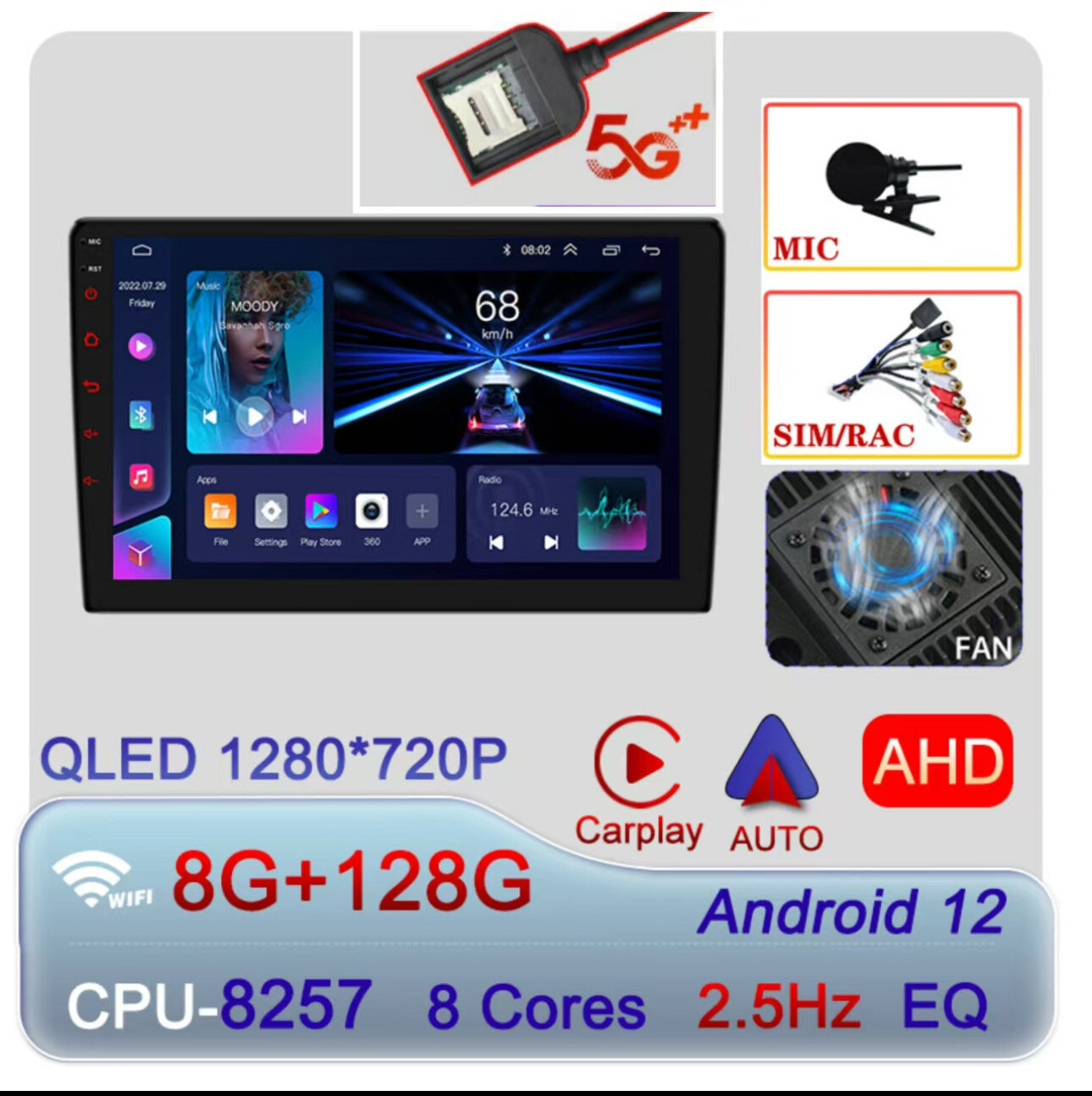 Автомагнитолы Магнитола android 9 дюймов 8/128GB IPS 4G CarPlay