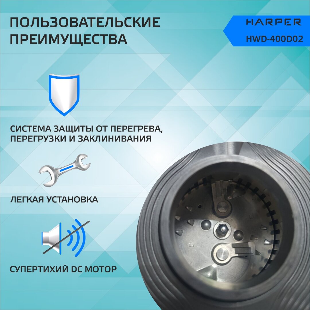 Измельчители отходов Измельчитель пищевых отходов Harper HWD-400D02 / измельчитель для раковины