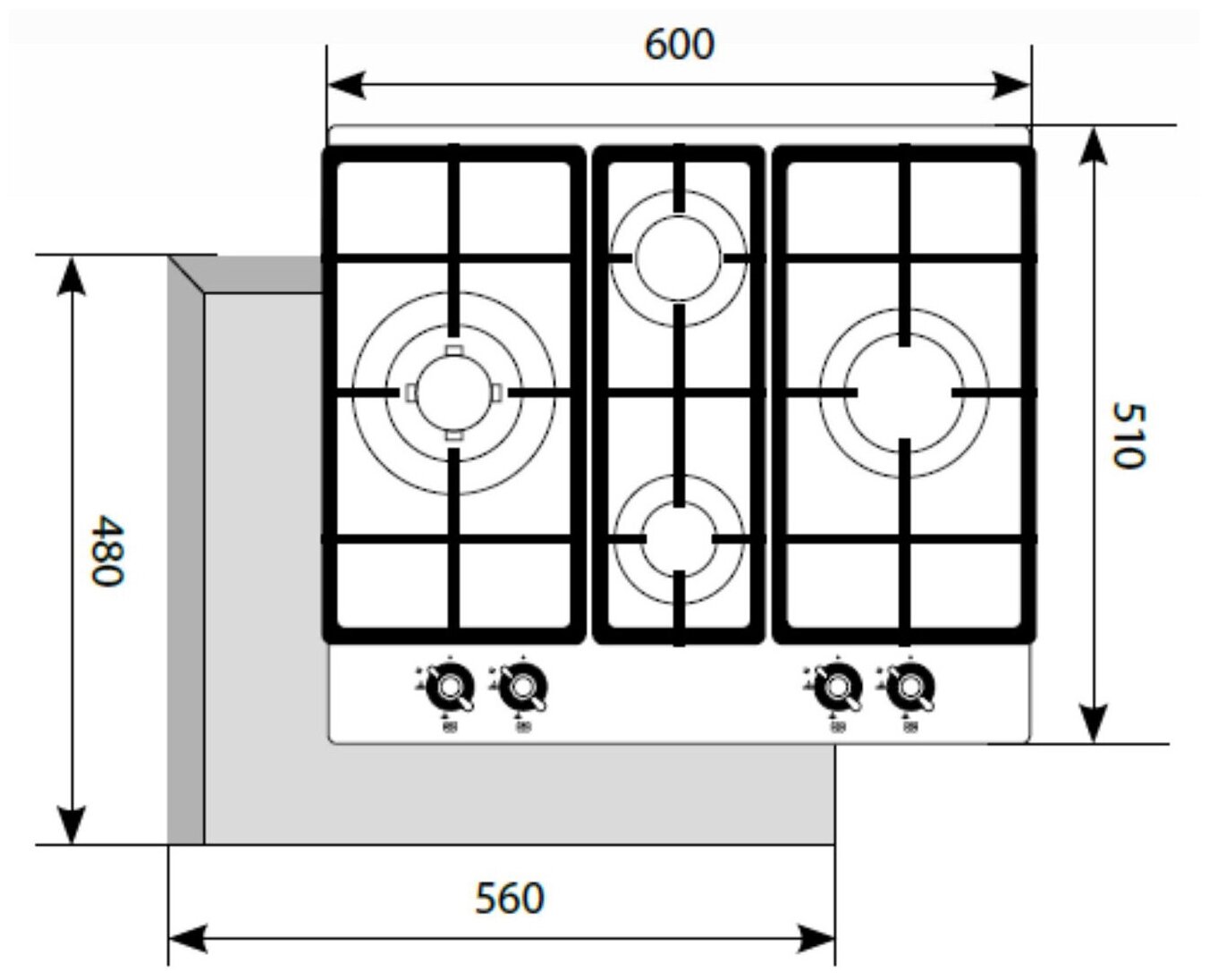 | Размеры для встраивания (ШхГ) | 560x480 мм |