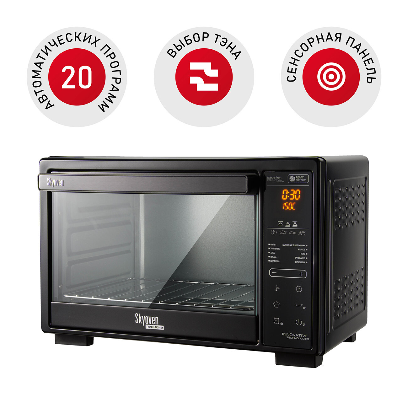 Лучшие цены. Духовой шкаф SkyOven RO-5727S – компактный прибор в современном дизайне, который запекает мясо и рыбу, готовит томленые блюда и ароматную выпечку. Мощный духовой шкаф SkyOven с вместительной камерой объёмом 20 литров, оборудован двумя нагревательными панелями вверху и внизу. Нагреватели независимы друг от друга, работают как вместе, так и по отдельности. SkyOven имеет 20 автоматических программ приготовления, которые готовят еду в температурном диапазоне от 40 до 230 градусов. Магазины в вашем городе.
